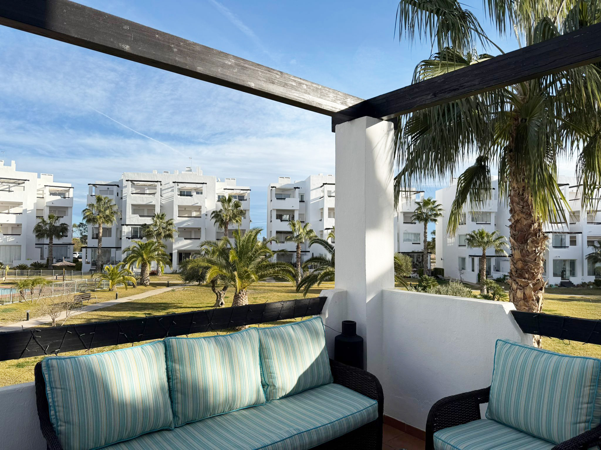 Superbe appartement situé en plein coeur d’un resort de golf entourée d’espaces verts avec piscine communautaire sur Roldan à seulement 20 minutes des plus belles plages de la région et à seulement 30 km de la Zenia.
