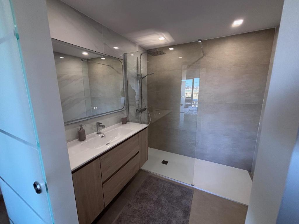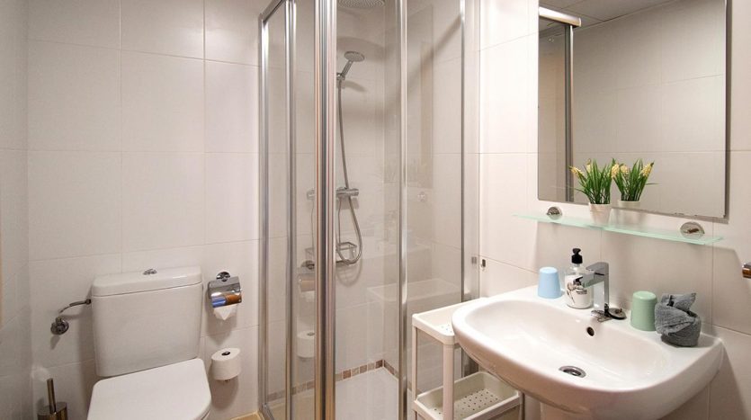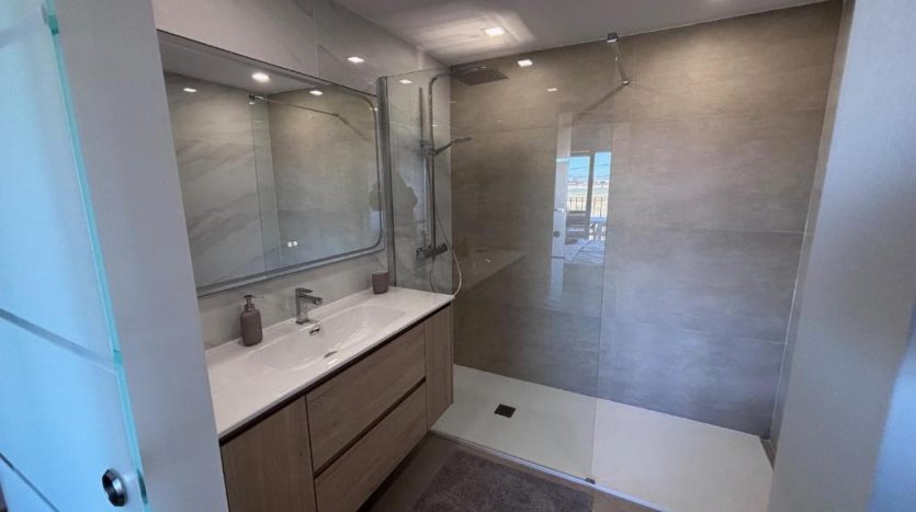 Chacune des deux chambres doubles est équipée d’armoires encastrées pleine hauteur offrant un important espace de rangement et de penderie. La chambre principale bénéficie d’une salle de bains familiale à deux lavabos, tandis que la deuxième chambre partage une salle de bains adjacente.