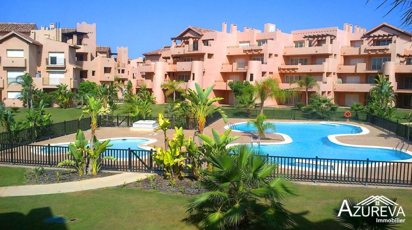 Les appartements sont intégrés dans un milieu semi-naturel entouré d’un lac et de très grands espaces verts avec palmiers disposant également de piscines communautaires, restaurants, supermarché, bars, terrain de Paddel, aires de jeux pour les enfants, parcours de santé, practice de golf et espace détente avec un SPA.