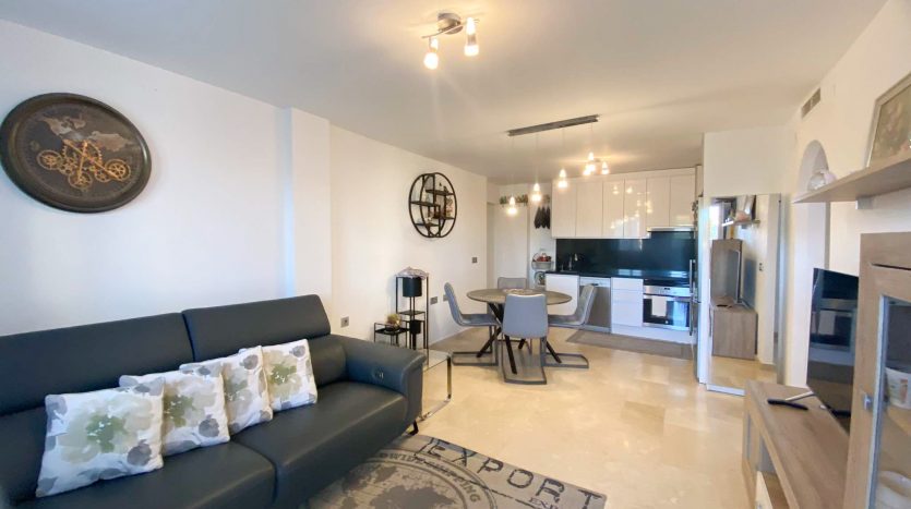 L’appartement d’une surface habitable de 76 m2 se compose de deux chambres , une salle de bains, d’une pièce à vivre avec une cuisine ouverte , d’une terrasse d’environ 15 m2