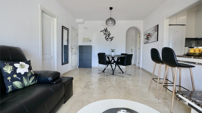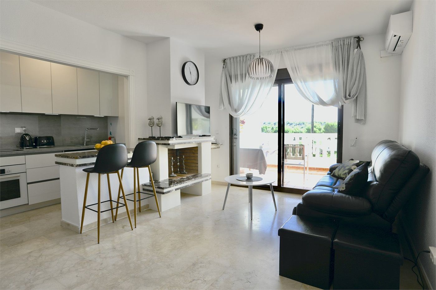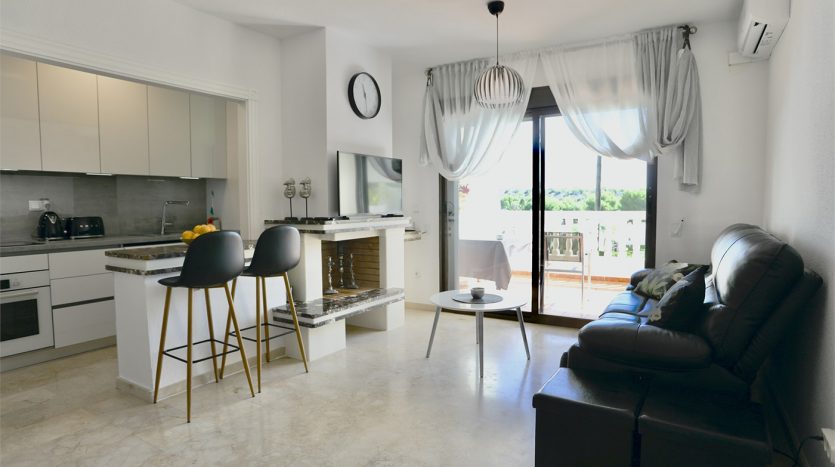 Superbe appartement deux chambres situé en plein coeur d’un resort de golf entouré d’espaces verts avec piscine communautaire sur Campoamor à seulement 4 km des plus belles plage de la région à 1 km du centre commercial de la Fuente offrant une multitude de bars, magasins et restaurants.