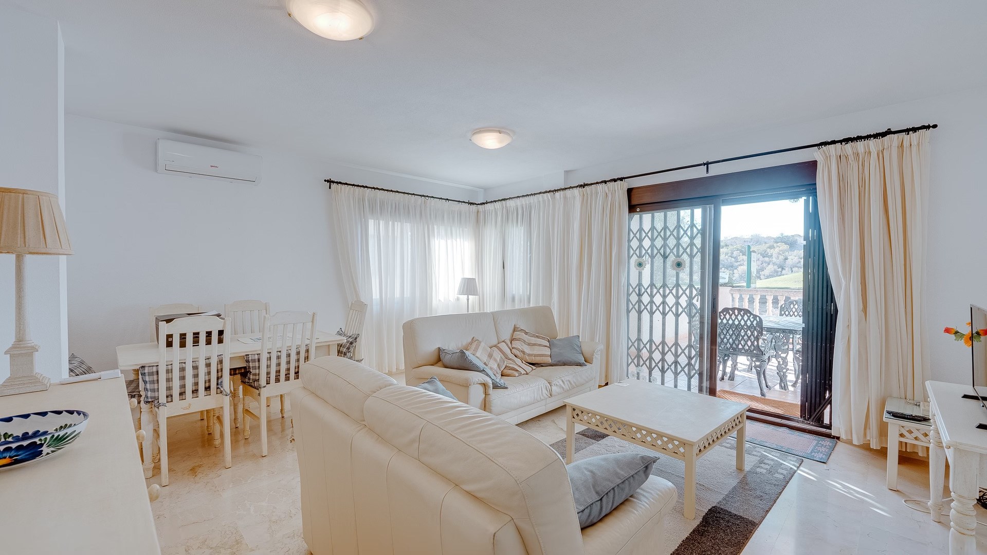 L’appartement dispose d’une terrasse orientée sud offrant une vue golf