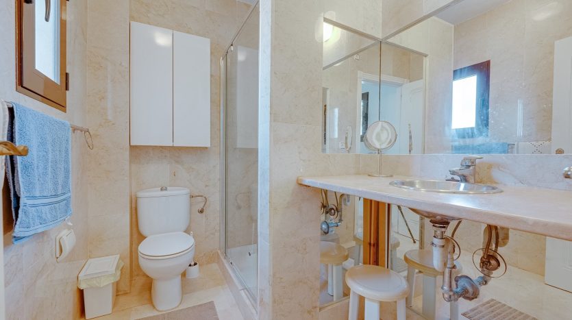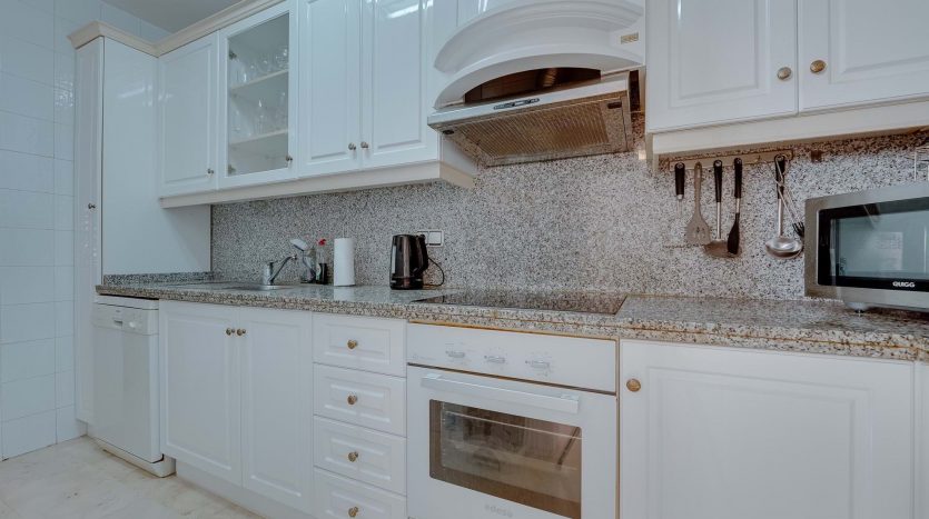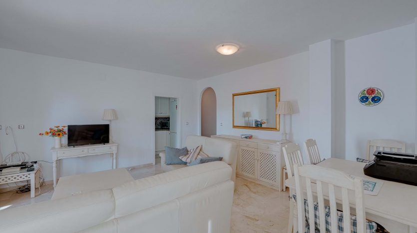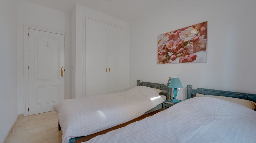 Cet appartement a une position idéale puisqu’il se situe à seulement une vingtaine de mètres de la superbe piscine entourée de gazon naturel et dispose surtout d’un superbe solarium privé.