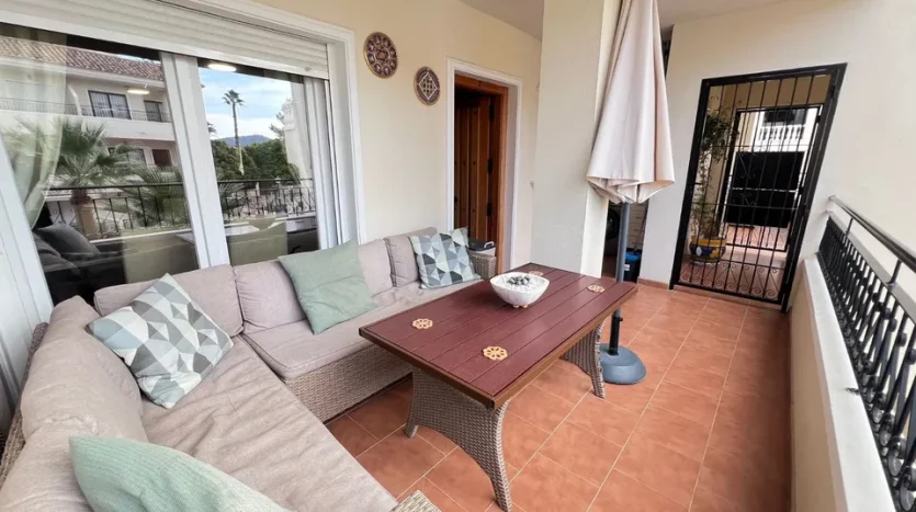 L’appartement dispose également d’une terrasse avant orientée Ouest ,offrant une vue sur les superbes espaces communautaire ainsi de la jolie piscine entourée de gazon naturel.