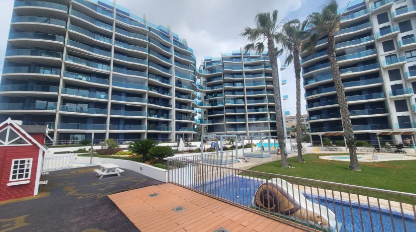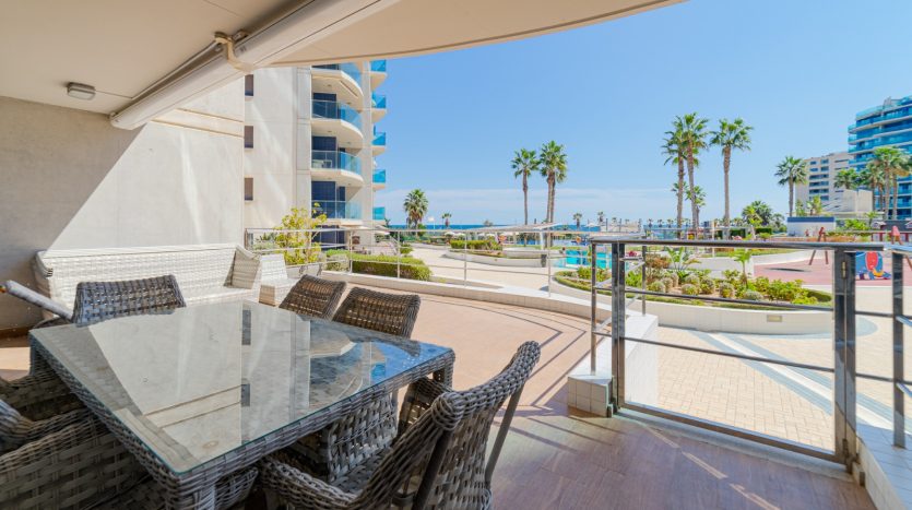 Superbe appartement situé dans une résidence fermée avec piscine communautaire en plein coeur de Punta Prima en première ligne de plage.