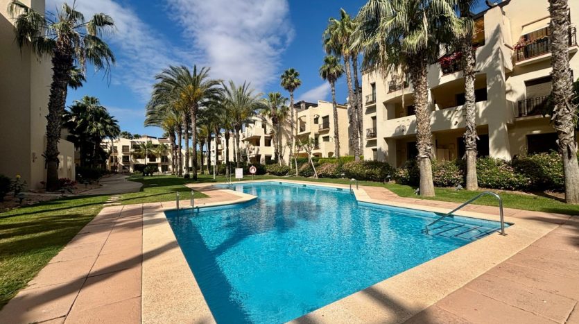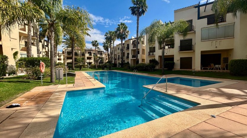 Les appartements sont intégrés dans un milieu semi-naturel entouré d’un lac et de très grands espaces verts avec palmiers disposant également de piscines communautaires, restaurants, supermarché, bars, terrain de Paddel, aires de jeux pour les enfants, parcours de santé, practice de golf et espace détente avec un SPA.