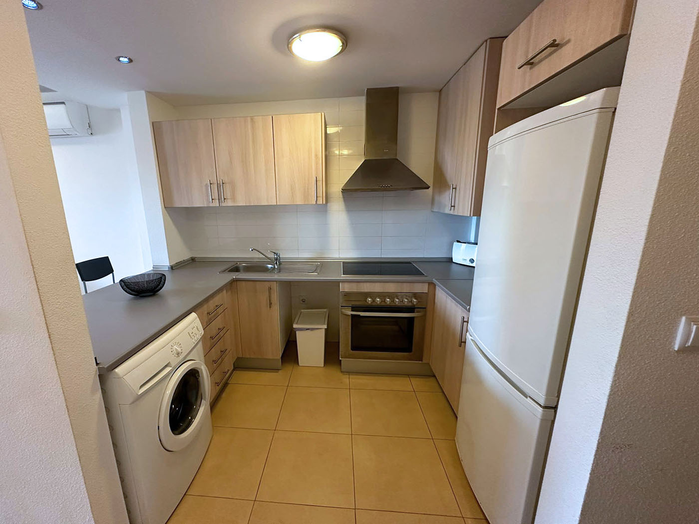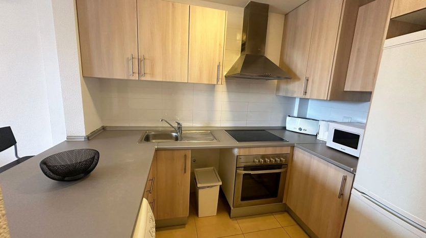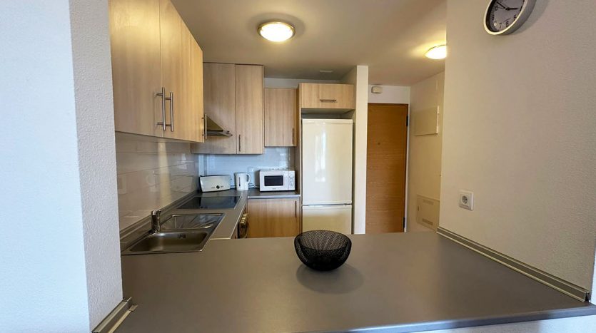 L’appartement situé au rez de chaussée propose un salon & salle à manger avec une cuisine équipée ouverte, deux chambres et une salle de bains.