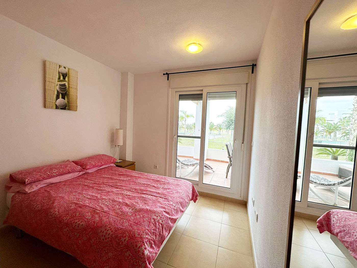 L’appartement dispose d’une terrasse ainsi qu’un jardin privé avec une vue sur les espaces verdoyant et accès direct à la piscine.