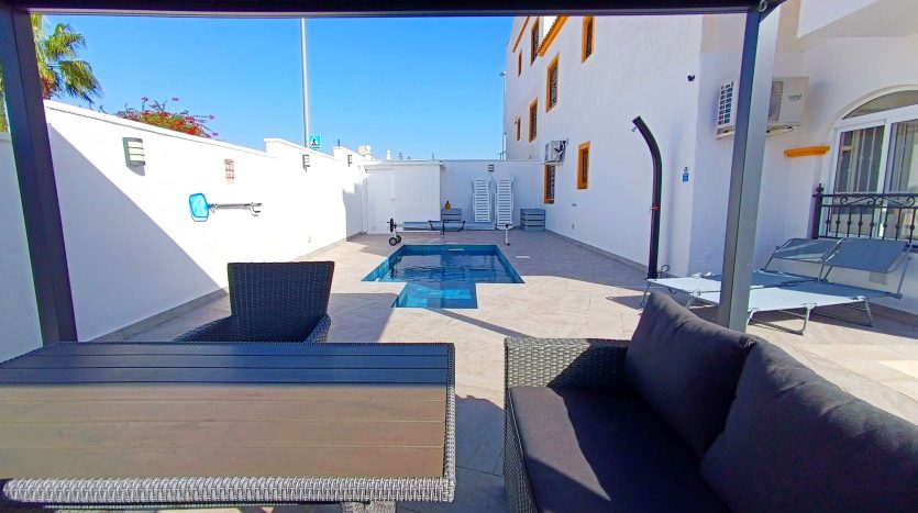 L’appartement est situé à quelques pas de la piscine communautaire et dispose d’une très grande parcelle d’angle avec sa propre piscine privée
