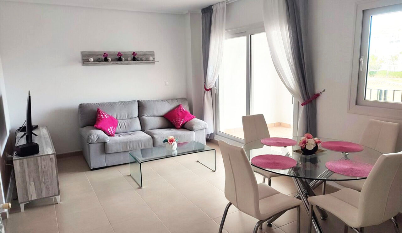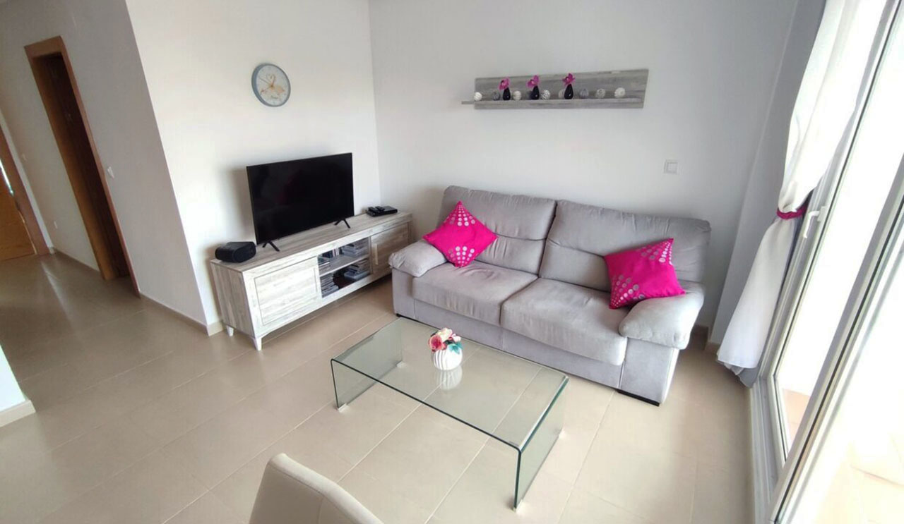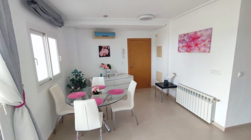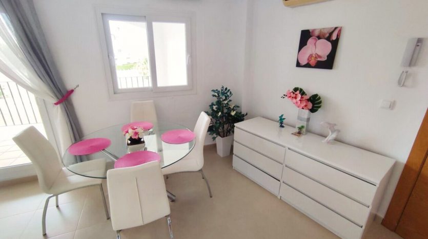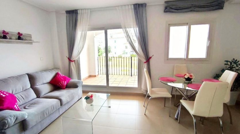 Appartement deux chambres situé en plein coeur d’un resort de golf entourée d’espaces verts avec piscine communautaire sur Sucina à seulement 20 minutes des plus belles plages de la région et à seulement 25 km de la Zenia.