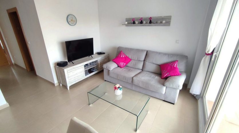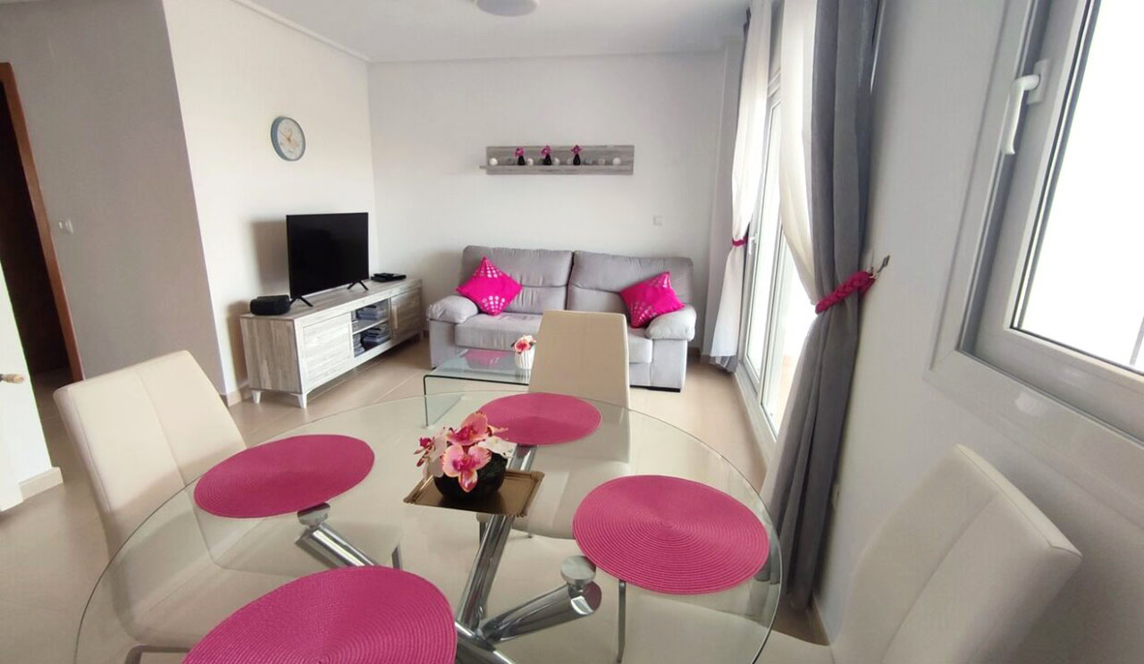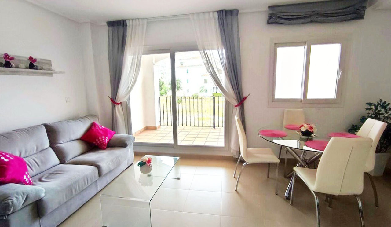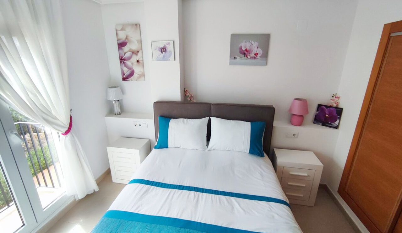 Appartement deux chambres situé en plein coeur d’un resort de golf entourée d’espaces verts avec piscine communautaire sur Sucina à seulement 20 minutes des plus belles plages de la région et à seulement 25 km de la Zenia.