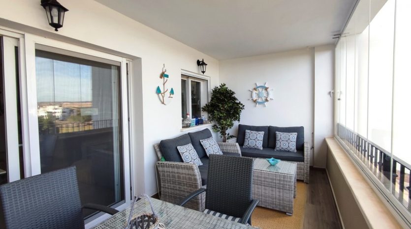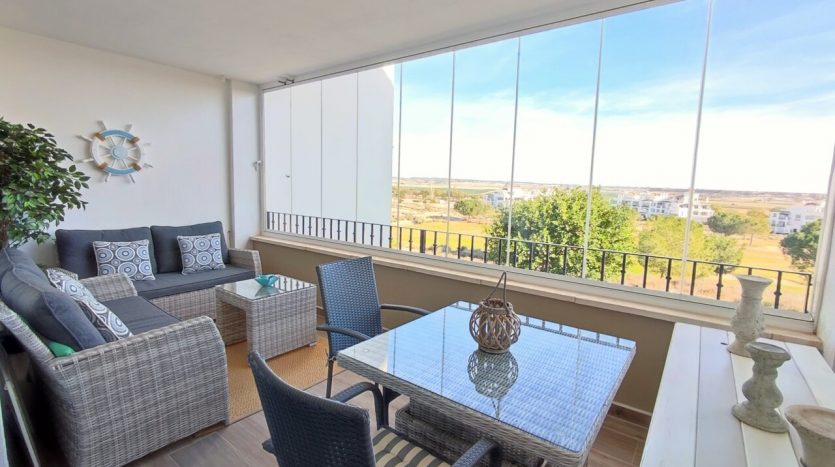 Appartement deux chambres situé en plein coeur d’un resort de golf entourée d’espaces verts avec piscine communautaire sur Sucina à seulement 20 minutes des plus belles plages de la région et à seulement 25 km de la Zenia.