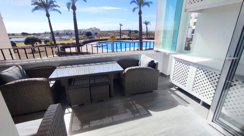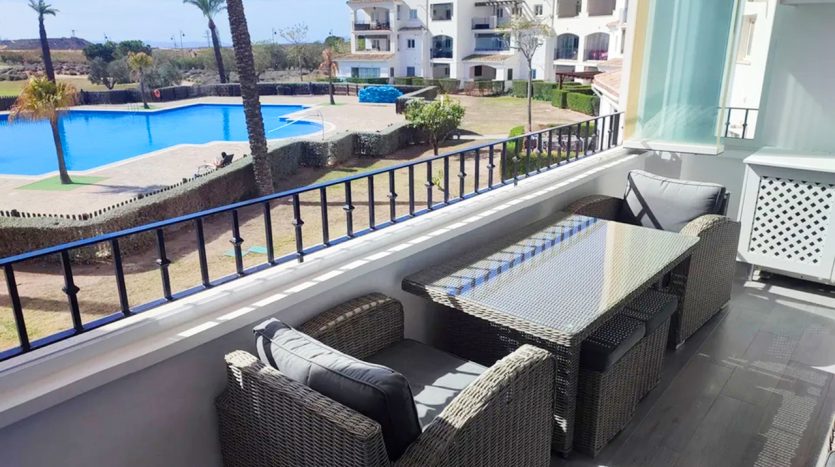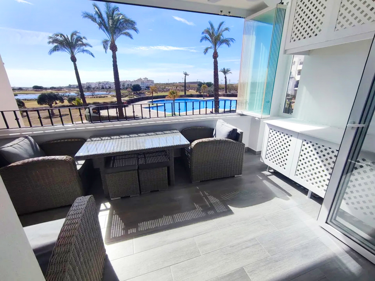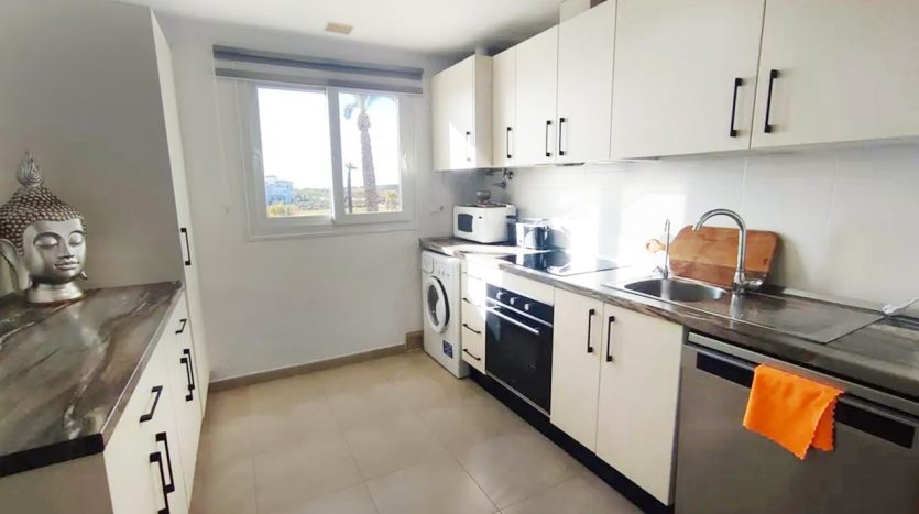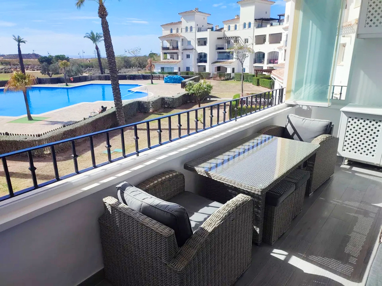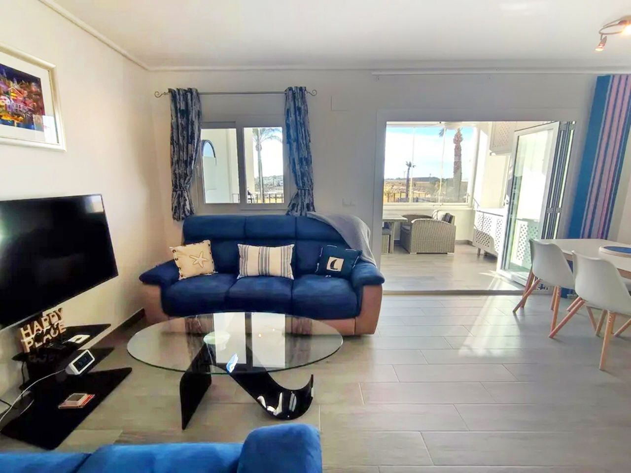 Appartement deux chambres situé en plein coeur d’un resort de golf entourée d’espaces verts avec piscine communautaire sur Sucina à seulement 20 minutes des plus belles plages de la région et à seulement 25 km de la Zenia.