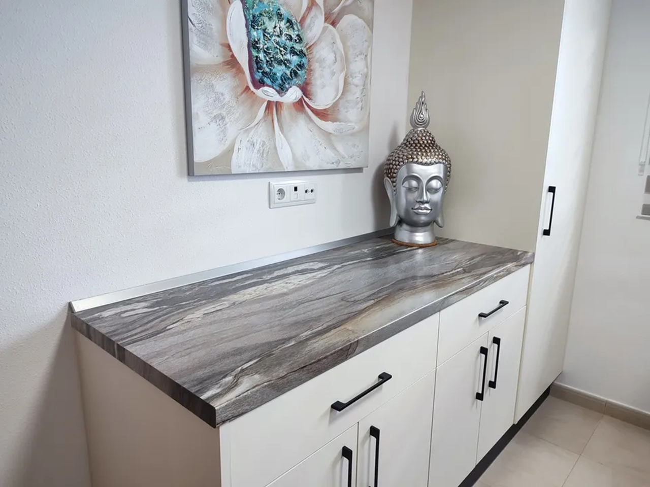 L’appartement a été rénové et dispose d’une nouvelle cuisine et d’une salle de bain avec douche a l’Italienne.
