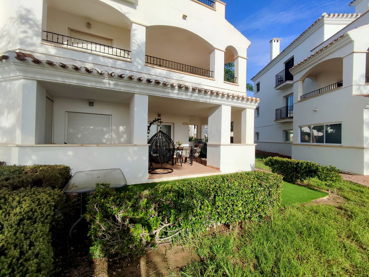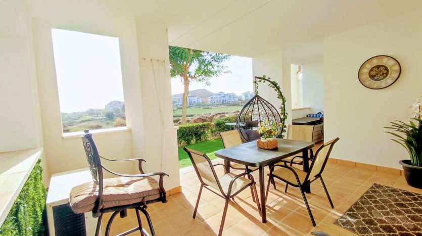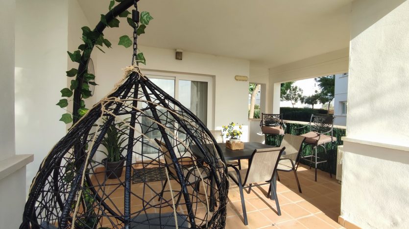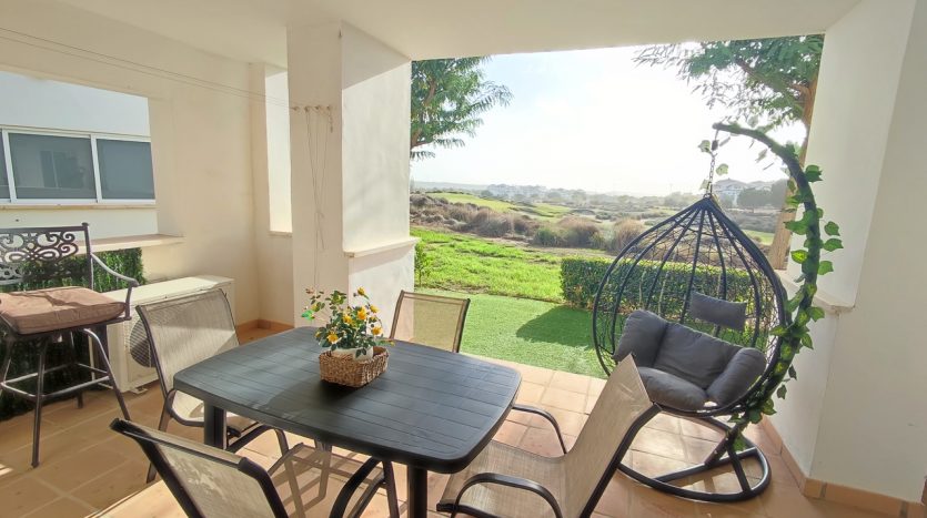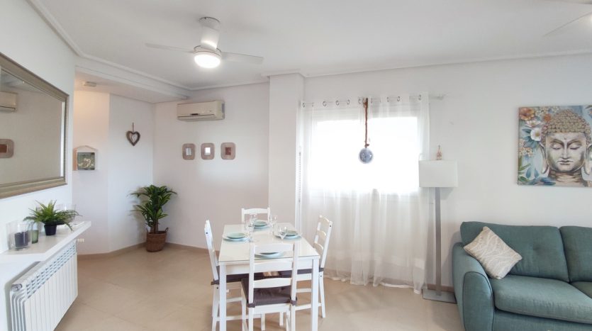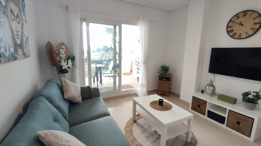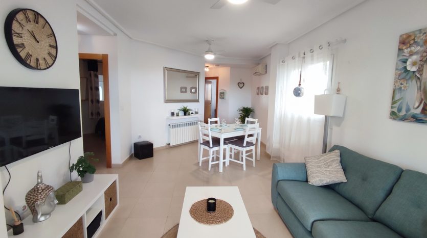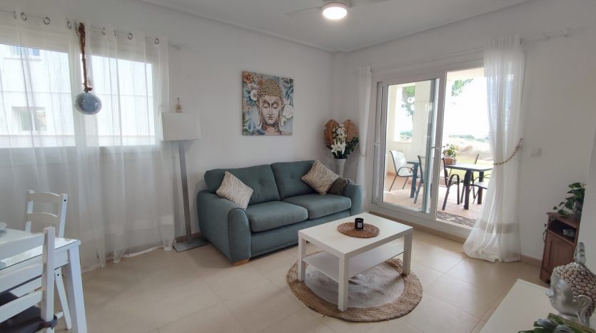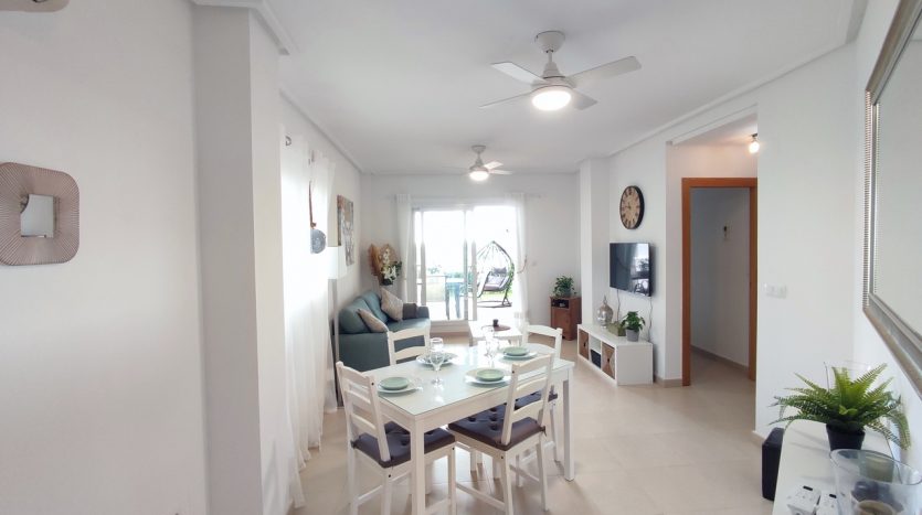 Appartement deux chambres situé en plein coeur d’un resort de golf entourée d’espaces verts avec piscine communautaire sur Sucina à seulement 20 minutes des plus belles plages de la région et à seulement 25 km de la Zenia.