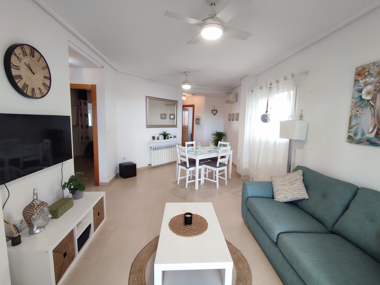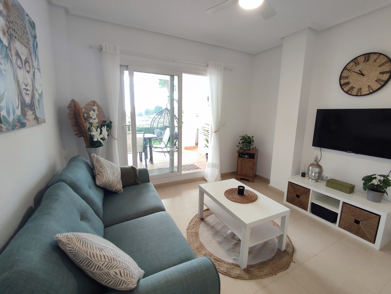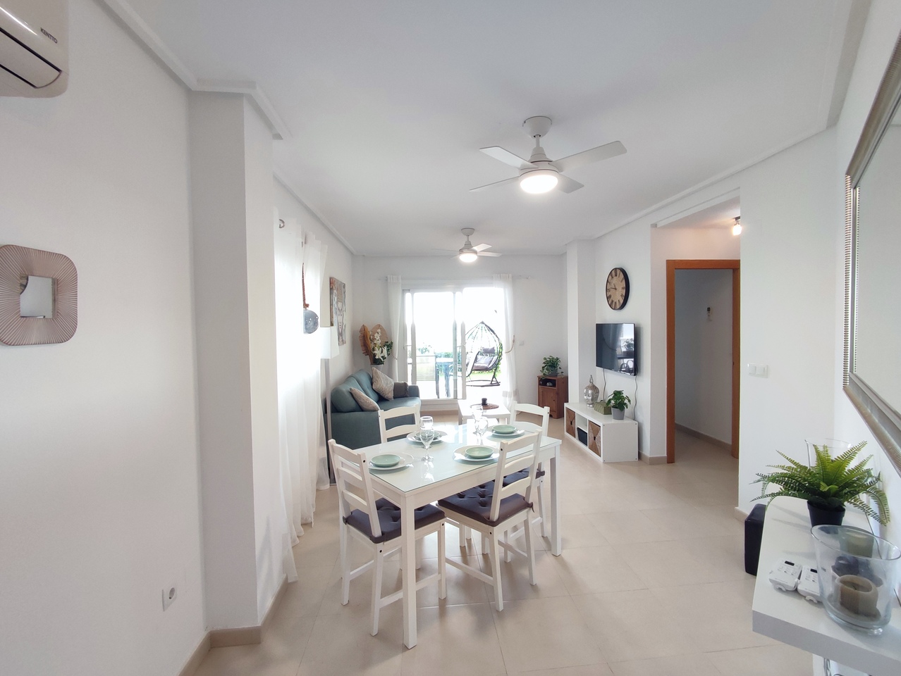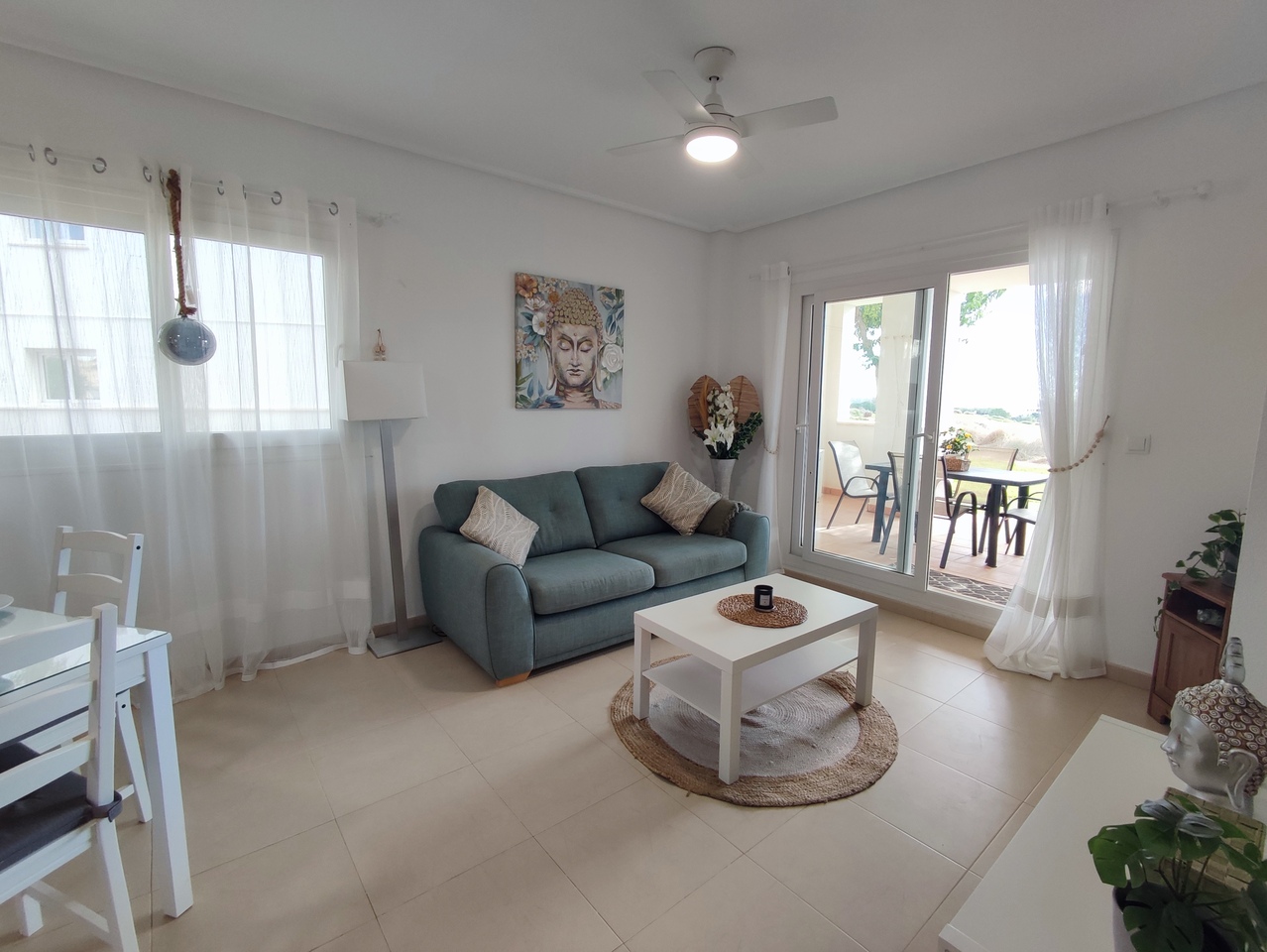 Appartement deux chambres situé en plein coeur d’un resort de golf entourée d’espaces verts avec piscine communautaire sur Sucina à seulement 20 minutes des plus belles plages de la région et à seulement 25 km de la Zenia.