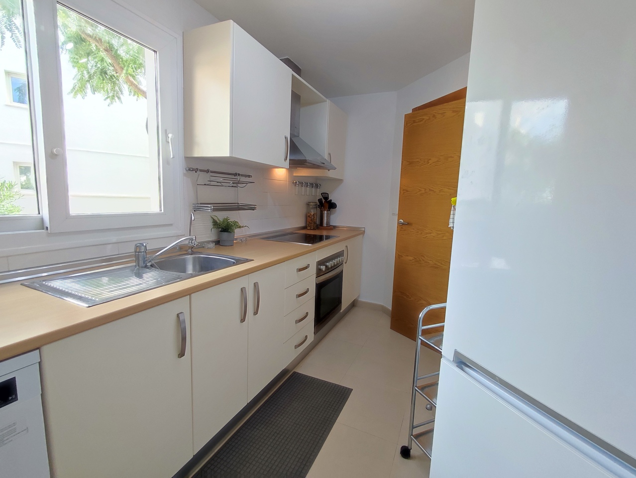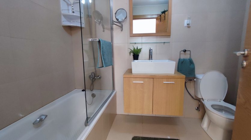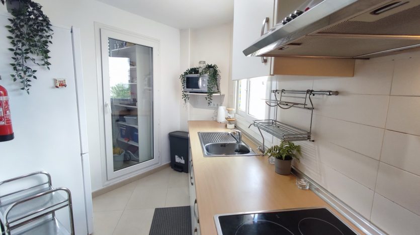 L’appartement situé au rez de chaussée, propose un salon & salle à manger avec une cuisine équipée indépendante, deux chambres, une salle de bains ainsi qu’un espace de rangement.
