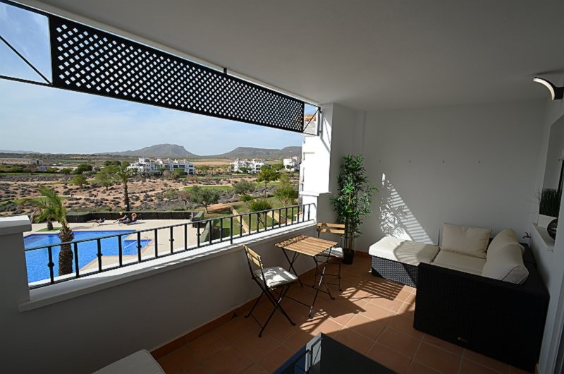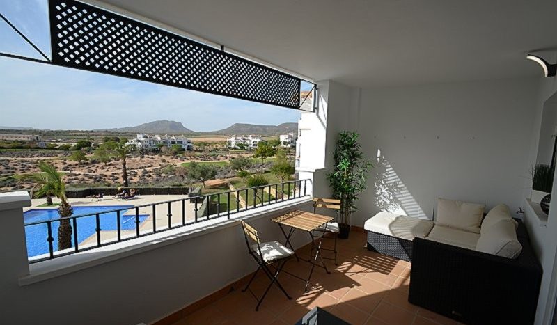 Appartement deux chambres situé en plein coeur d’un resort de golf entourée d’espaces verts avec piscine communautaire sur Sucina à seulement 20 minutes des plus belles plages de la région et à seulement 25 km de la Zenia.