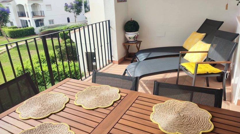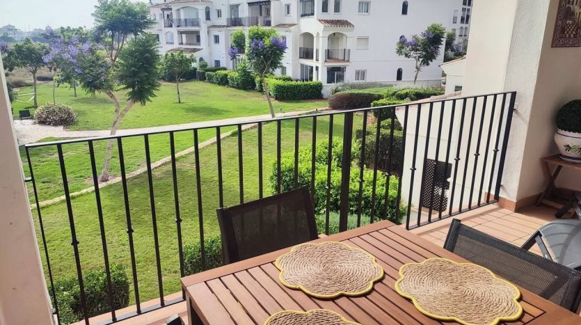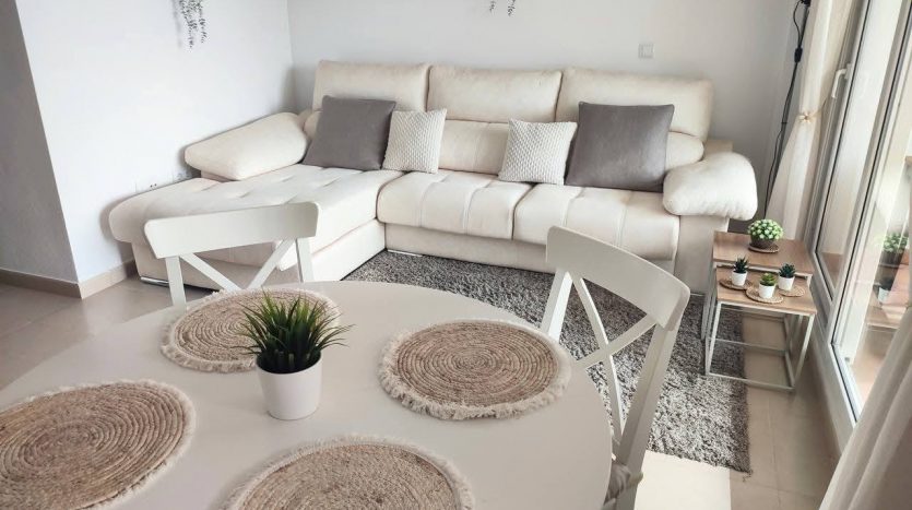 Appartement deux chambres situé en plein coeur d’un resort de golf entourée d’espaces verts avec piscine communautaire sur Sucina à seulement 20 minutes des plus belles plages de la région et à seulement 25 km de la Zenia.