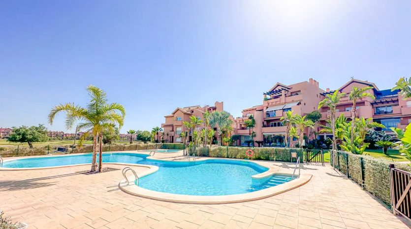Superbe appartement style méditerranéen situés dans un superbe complexe de Golf à seulement 6 km de la plage de Los Alcazares.
