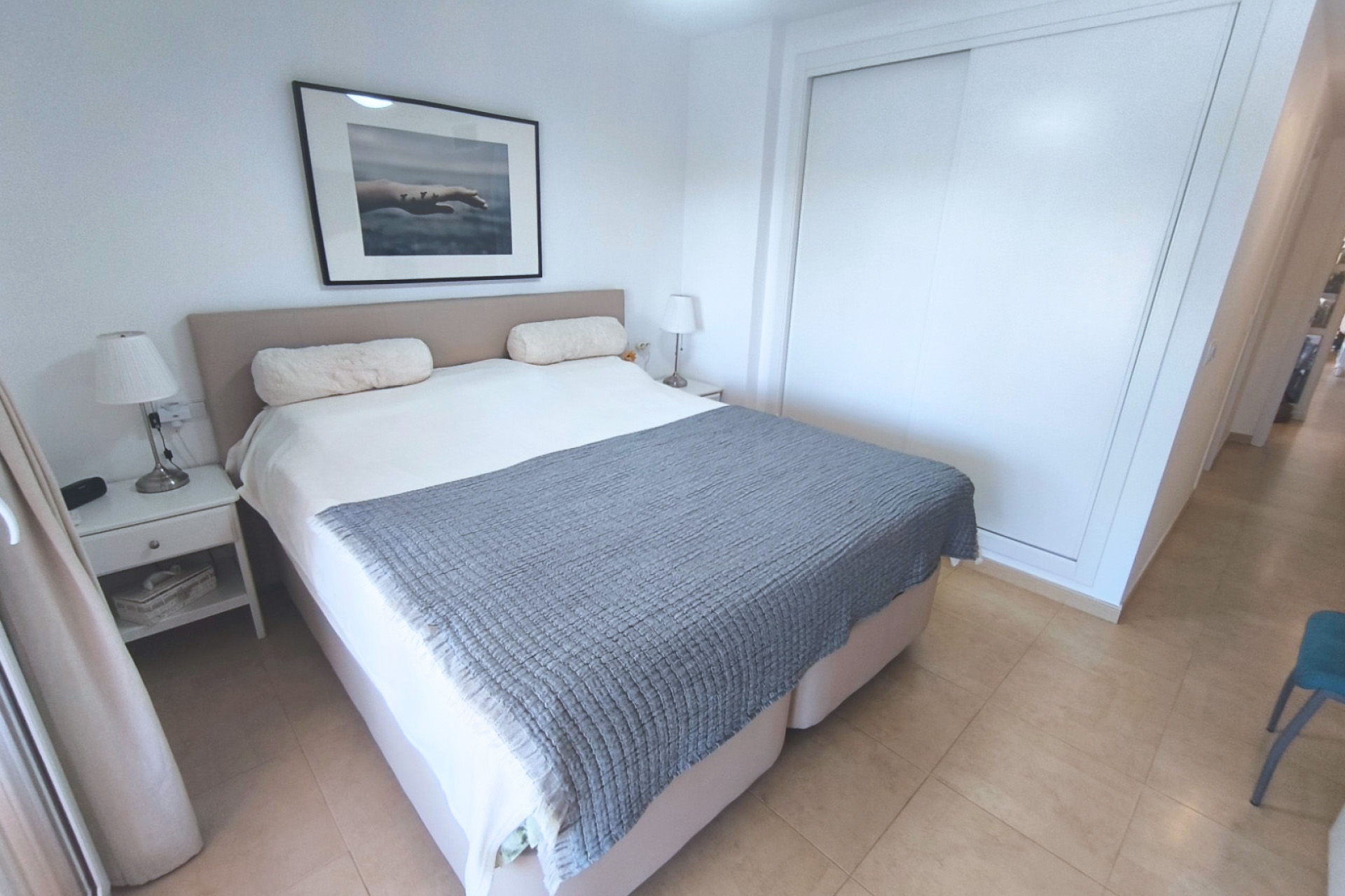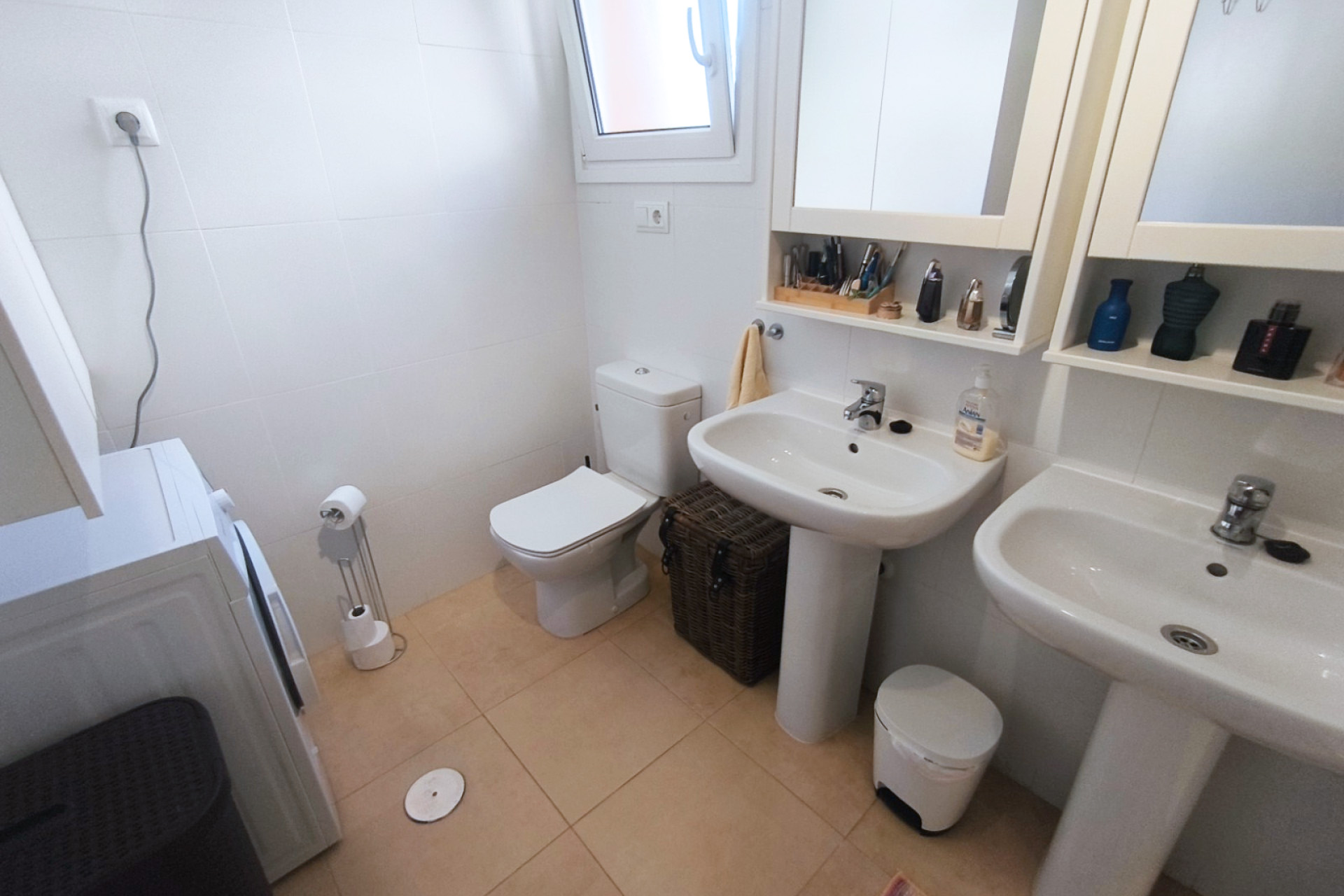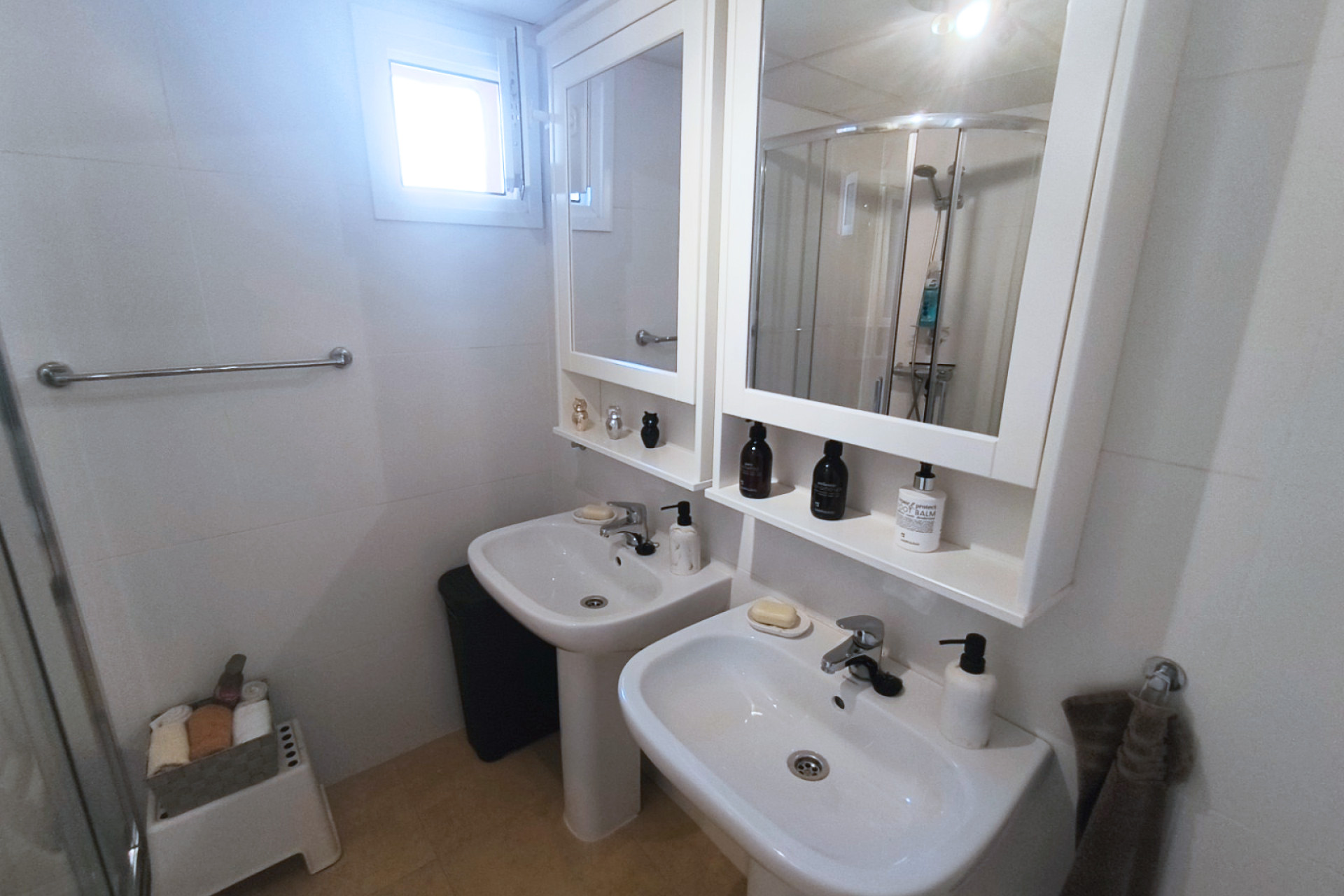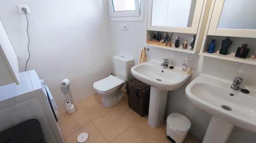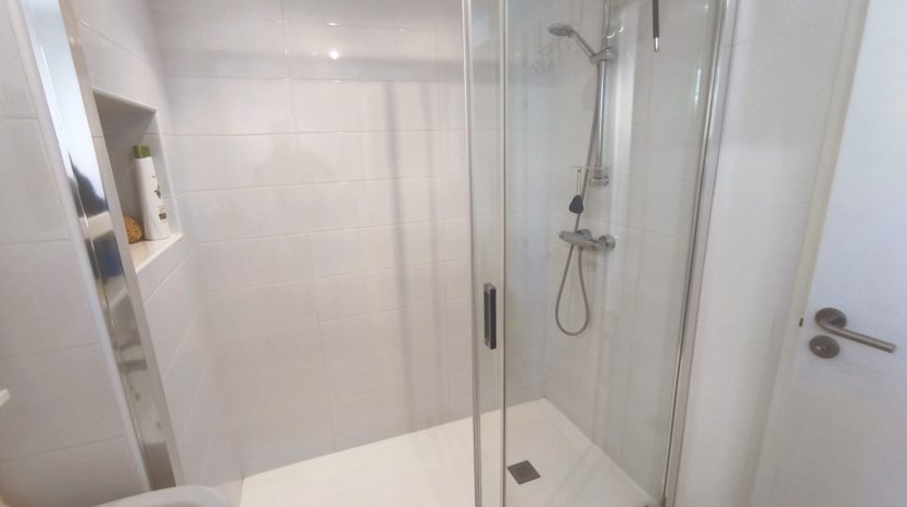 Chacune des deux chambres doubles est équipée d’armoires encastrées pleine hauteur offrant un important espace de rangement et de penderie. La chambre principale bénéficie d’une salle de bains familiale à deux lavabos, tandis que la deuxième chambre partage une salle de bains adjacente.