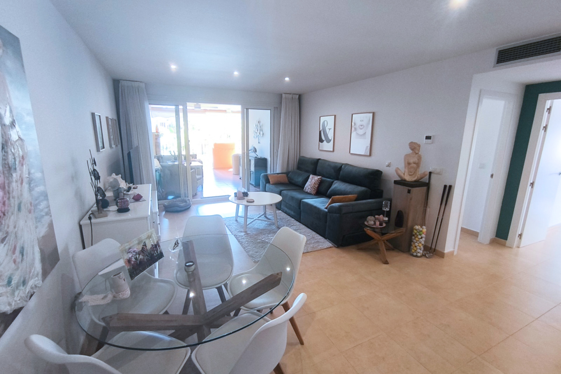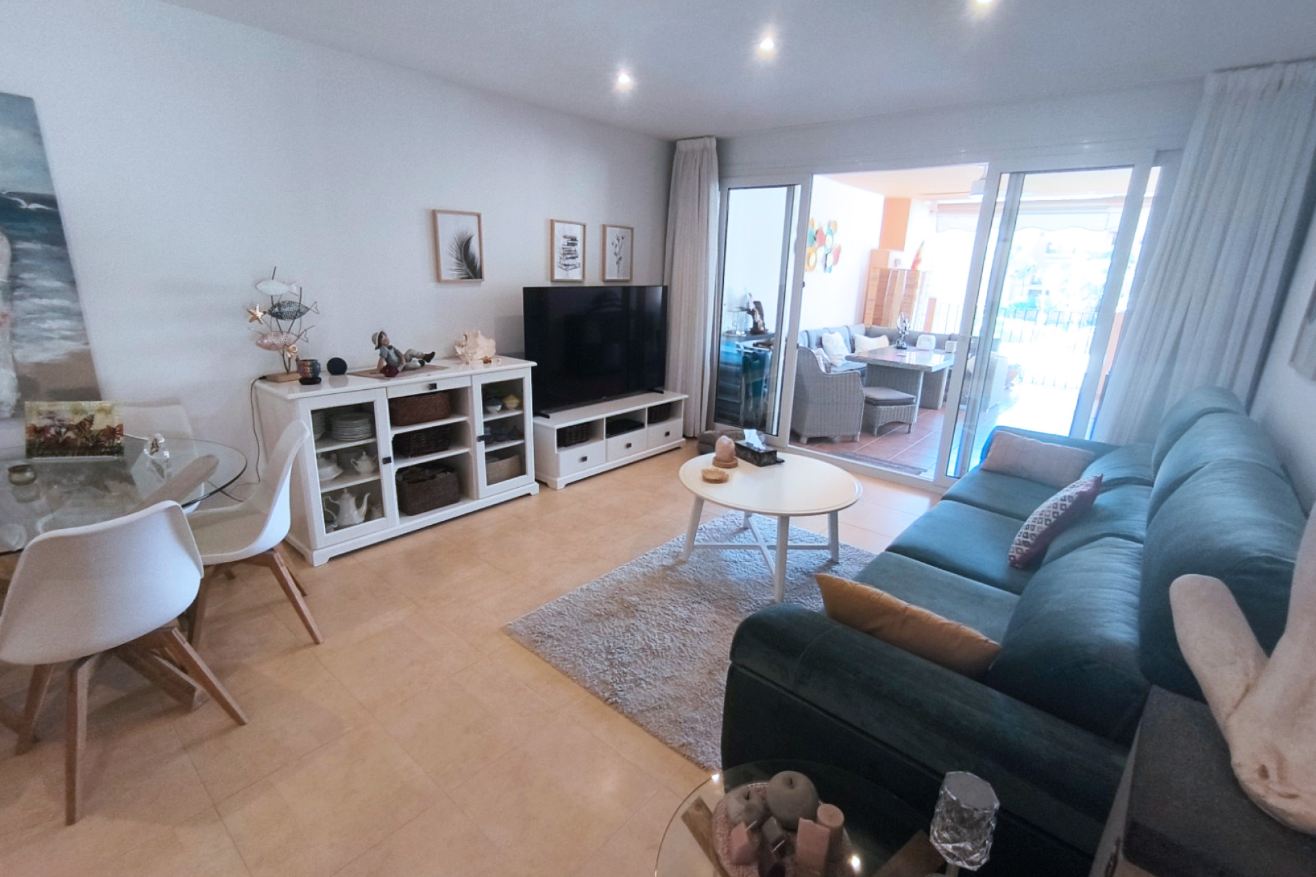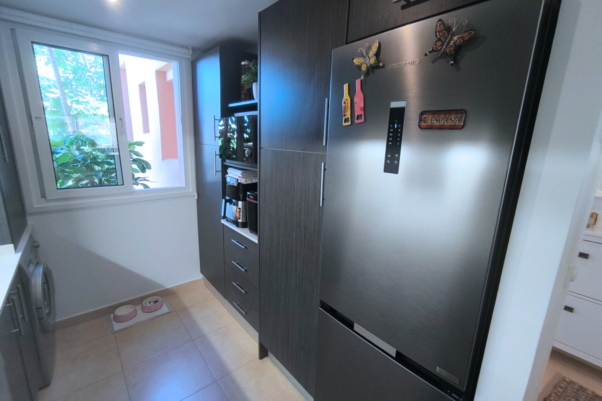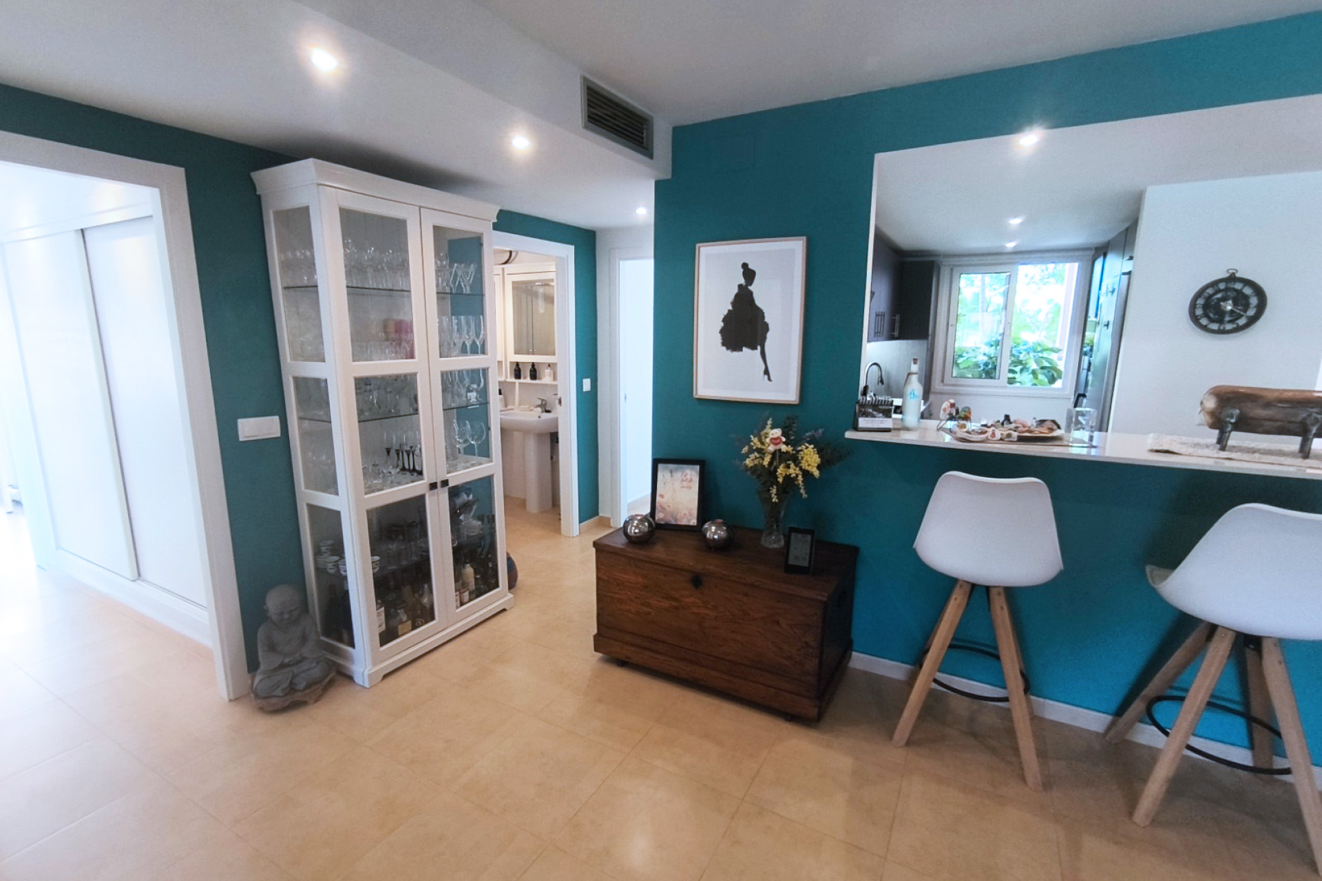 La cuisine moderne et attrayante est séparée du salon / salle à manger principal par un bar à petit-déjeuner pratique qui pourrait également servir de bar sympa. Le salon principal – lorsque les portes-fenêtres sont complètement ouvertes – crée un grand et fantastique espace ouvert parfait pour recevoir famille et amis.