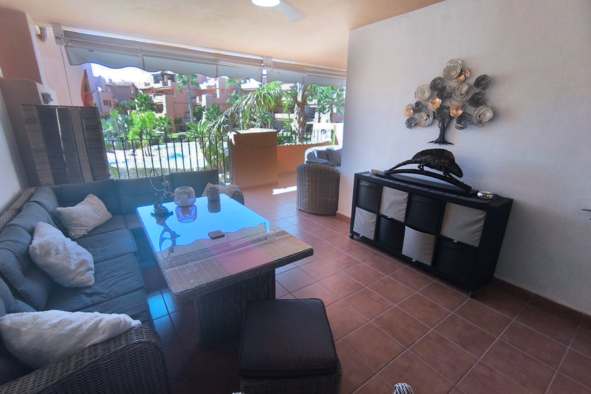 Les appartements sont intégrés dans un milieu semi-naturel entouré d’un lac et de très grands espaces verts avec palmiers disposant également de piscines communautaires, restaurants, supermarché, bars, terrain de Paddel, aires de jeux pour les enfants, parcours de santé, practice de golf et espace détente avec un SPA.