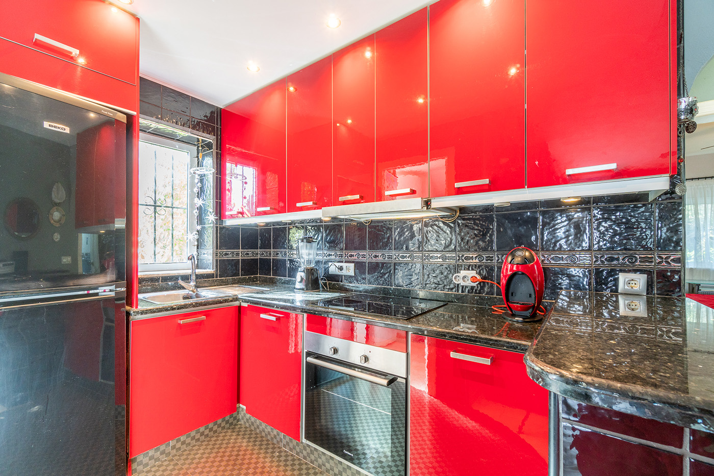 L’appartement situé au rez de chaussée propose un salon-salle à manger avec feu ouvert, une cuisine entièrement équipée adjacente ouverte sur le salon, deux chambres avec placards, deux salles de bains dont une salle de bains dans la chambre principale.