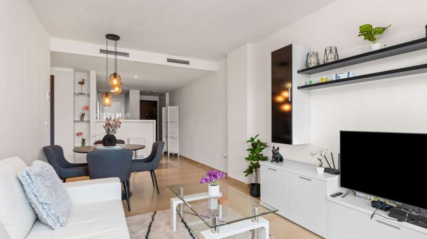 Magnifique appartement situé dans le complexe fermé à distance de marche du centre commercial La Fuente qui abrite une grande variété de bars, restaurants et supermarchés, à 5 minutes en voiture de la Villamartin Plaza, de 3 parcours de golf et à une courte distance en voiture des plages de sable fin de la Costa Blanca.