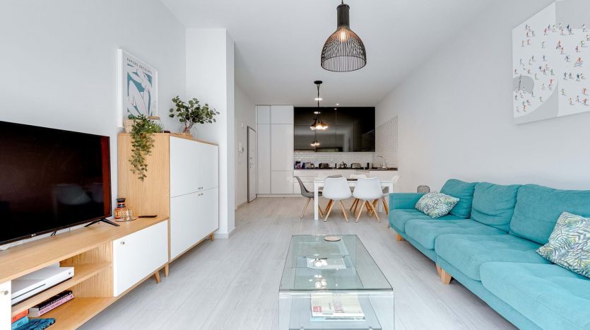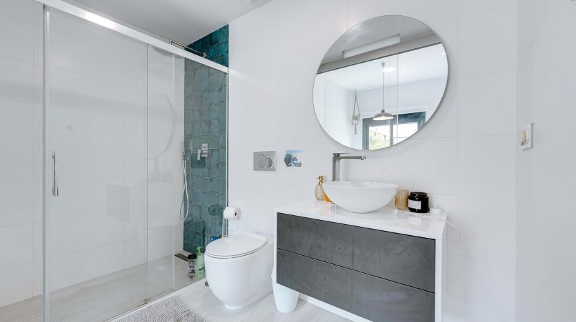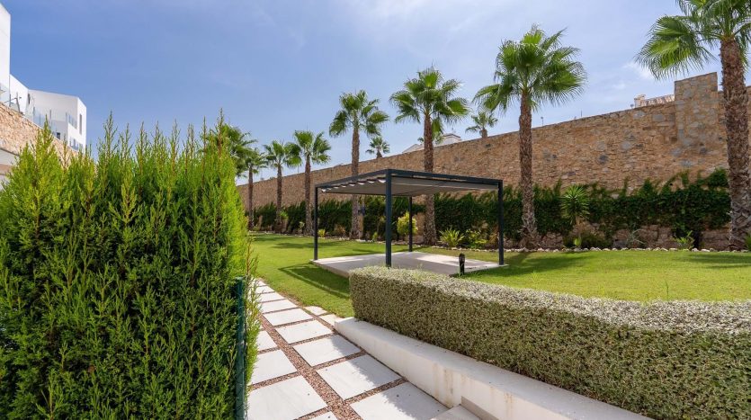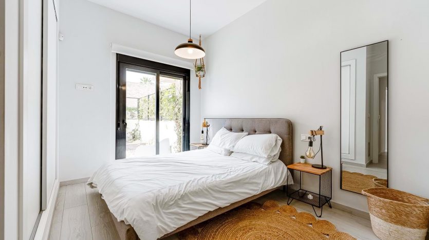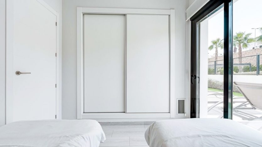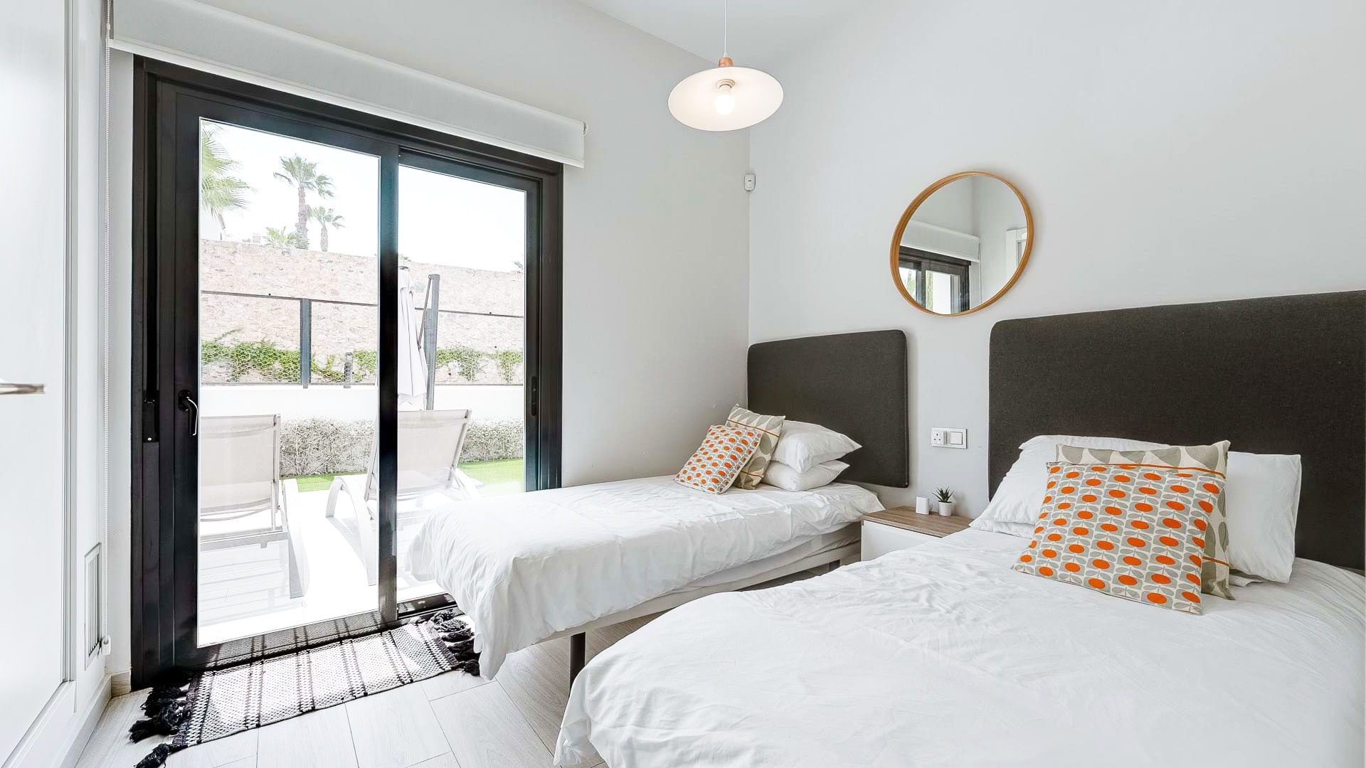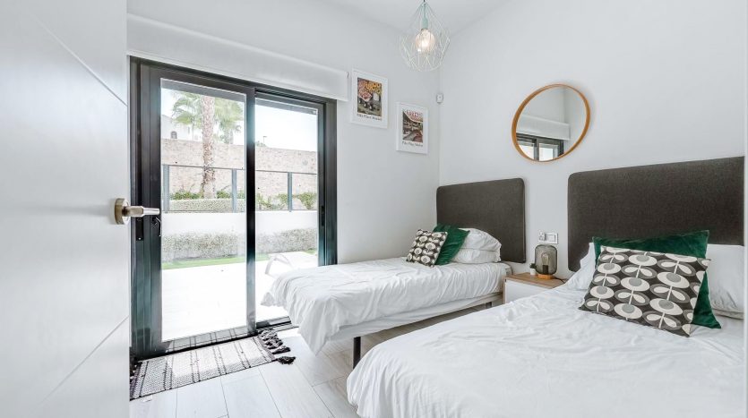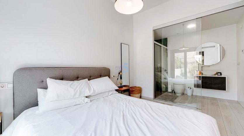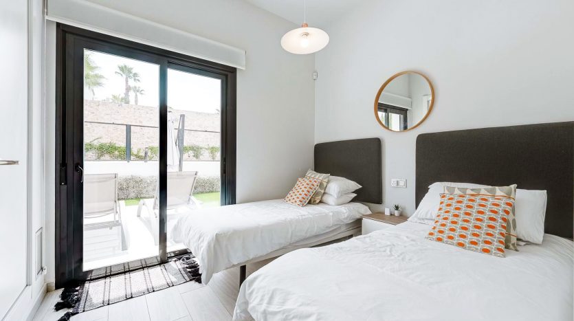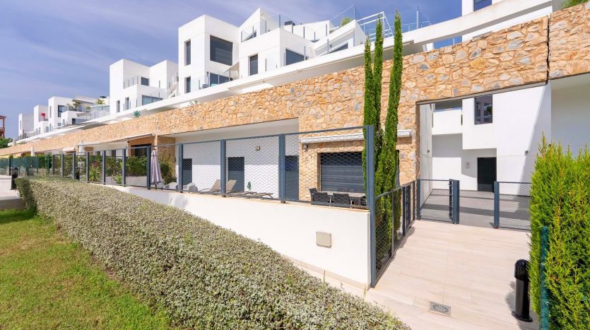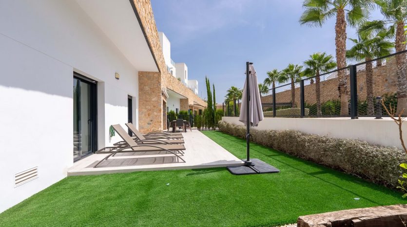 Cet appartement situé au rez-de-chaussée dispose d’une spacieuse terrasse, idéale pour se détendre ou recevoir, un espace salon-salle à manger-cuisine ouvert et lumineux, une cuisine entièrement équipée et climatisée, les trois chambres doubles donnent accès à la terrasse, la chambre principale disposant d’une salle de bain attenante avec douche à l’italienne. La salle de bain principale est également équipée d’une douche à l’italienne.