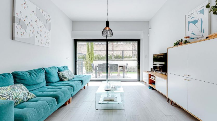 Azureva est heureux de présenter ce superbe appartement contemporain au rez-de-chaussée situé dans une magnifique résidence arborée.