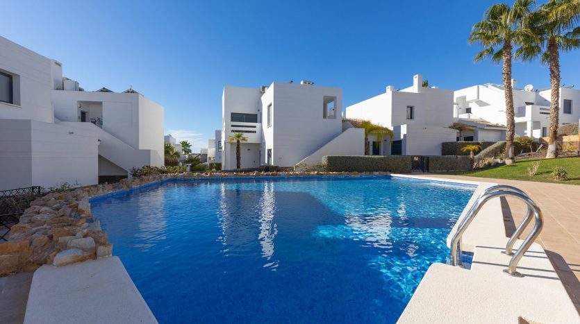 Superbe appartement deux chambres situé en plein coeur d’un resort de golf entouré d’espaces verts avec piscine communautaire sur Campoamor à seulement 4 km des plus belles plage de la région à 1 km du centre commercial de la Fuente offrant une multitude de bars, magasins et restaurants.