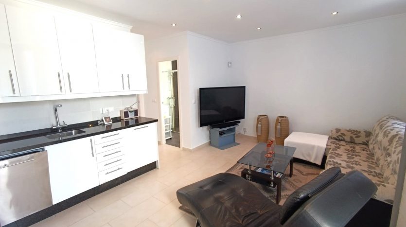 Le bungalow dispose d’une belle terrasse avant de 50 m2 carrelée avec la possibilityé d’y faire installer une petite piscine privée.