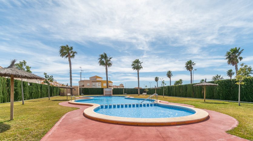 Charmante bungalow style méditerranéen située dans la célèbre urbanisation d’El Limonar sur Torrevieja à 2.5 km de la plage et proche des bars et restaurants.