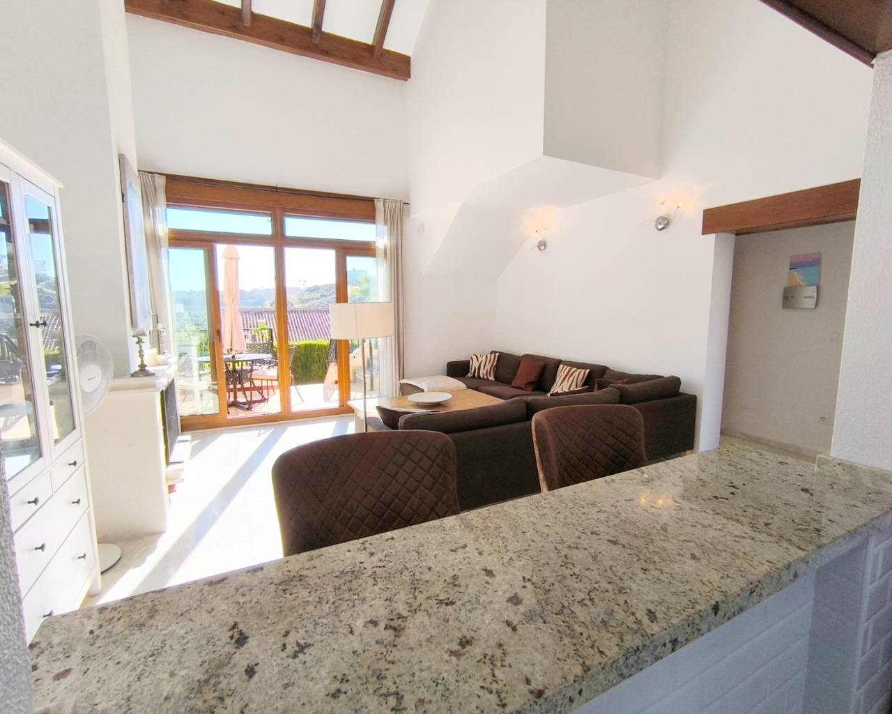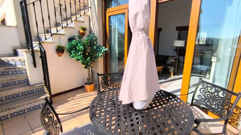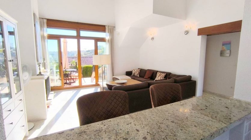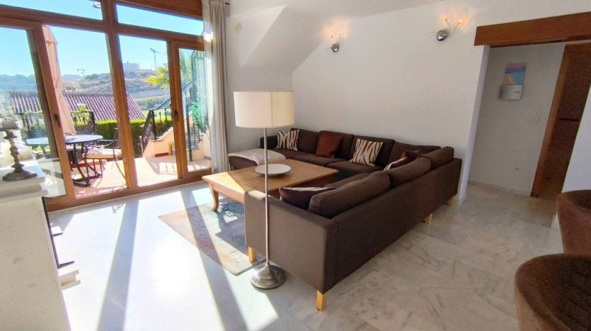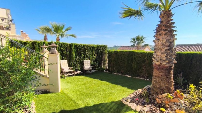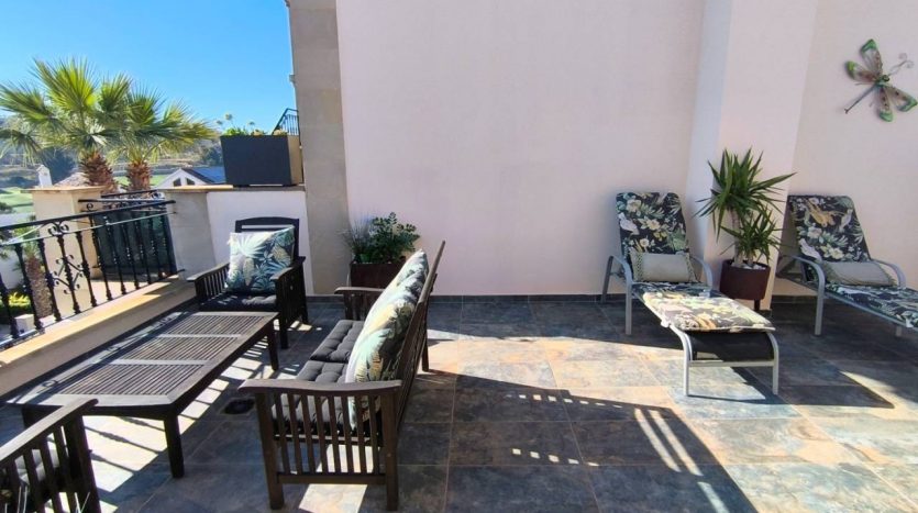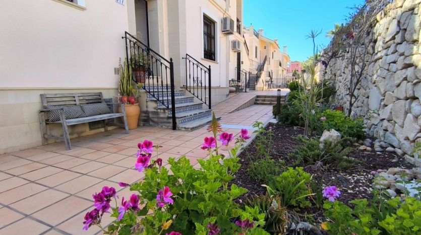 La propriété dispose d’une terrasse et jardin privé ainsi qu’un un accès à un superbe solarium privé offrant de superbes vues sur les alentours, le golf et les montagnes et se trouve à quelques pas de la superbe piscine communautaire entourée de gazon naturel.