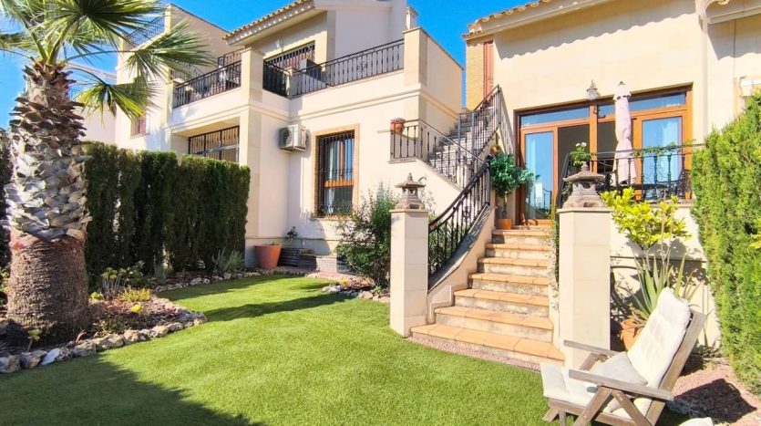 Superbe maison mitoyenne de style espagnole située dans un quartier calme dans le luxueux complexe La Finca Golf & Spa à seulement 15 km des plus belles plages.