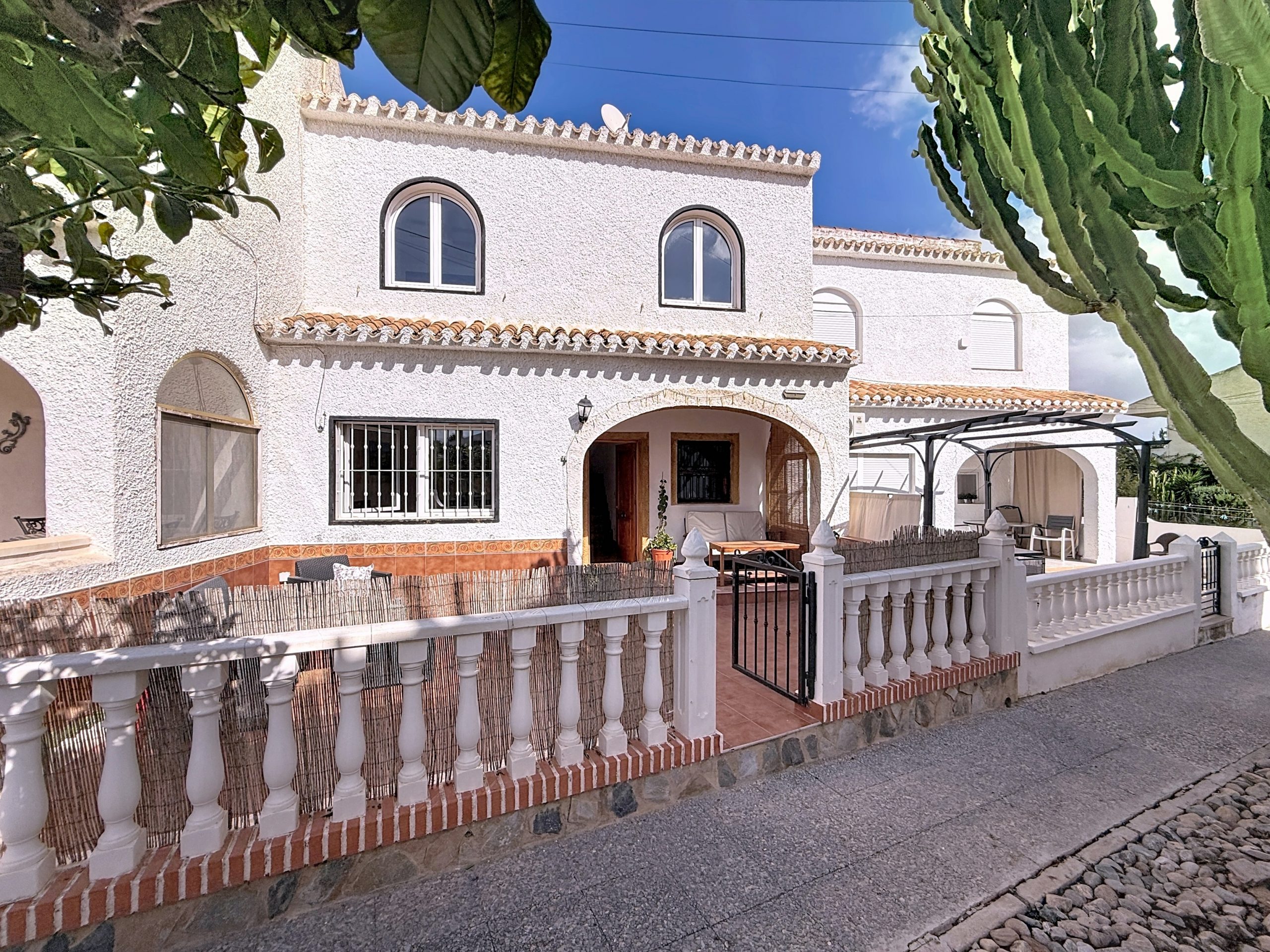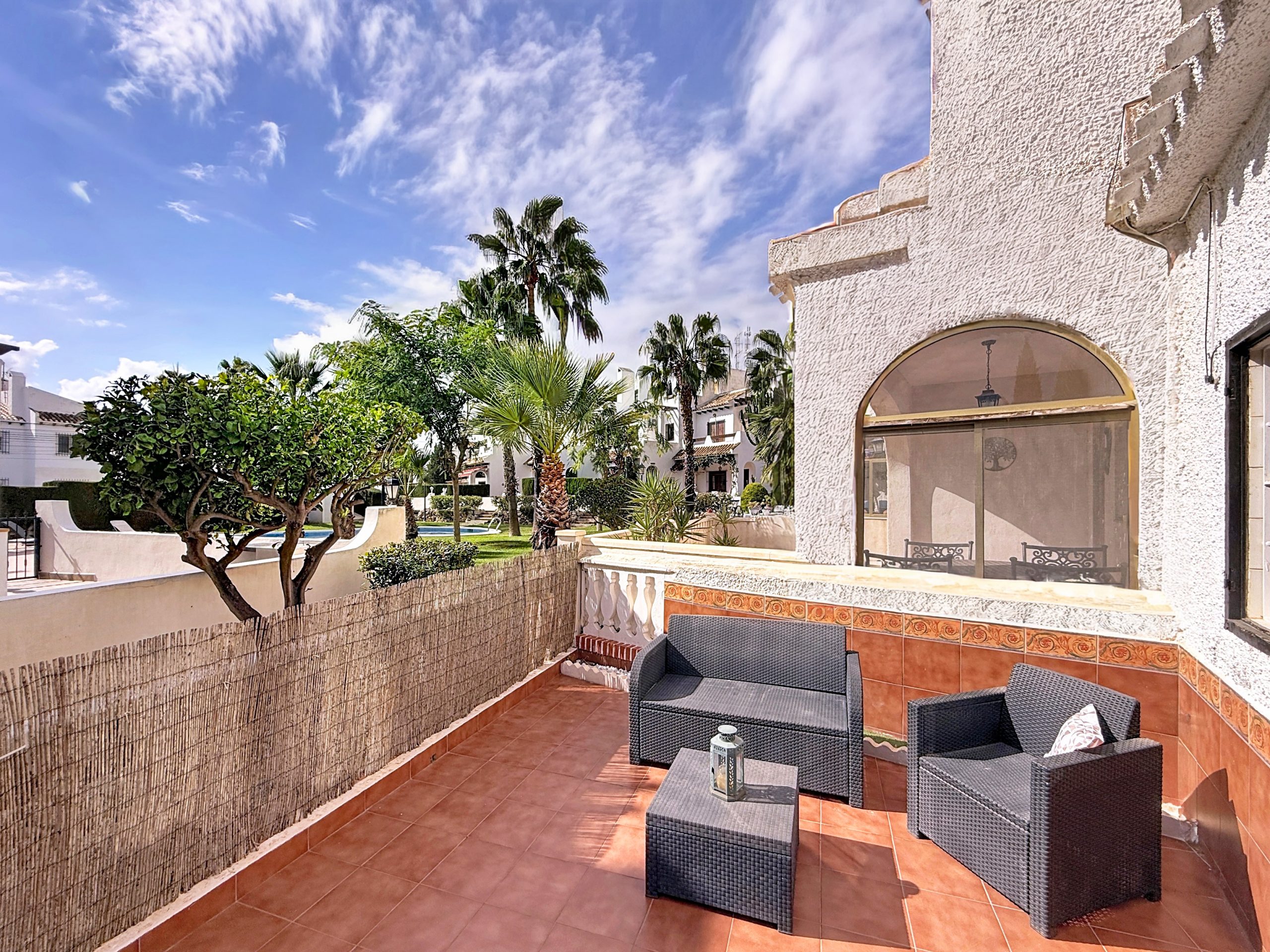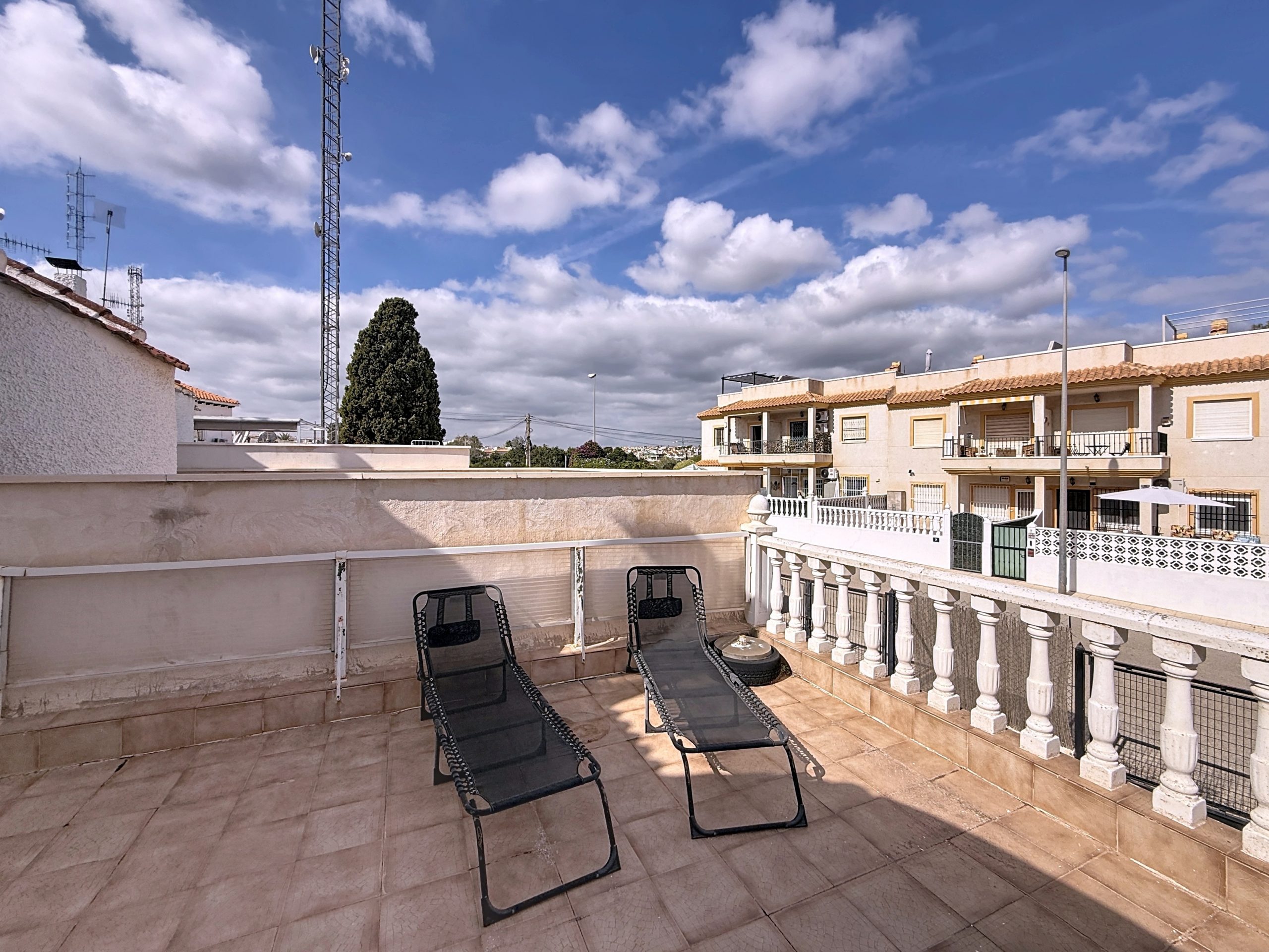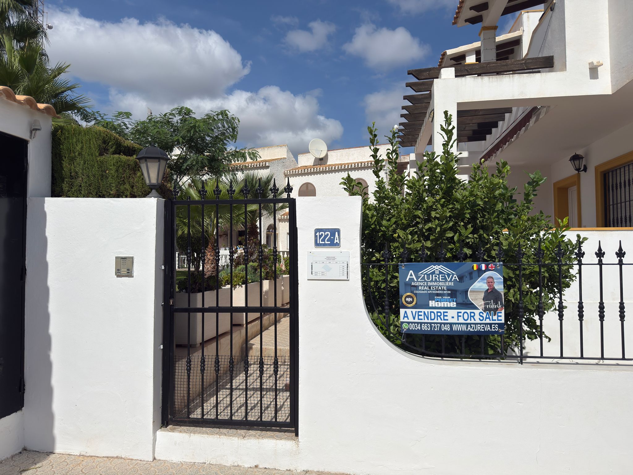 Superbe maison mitoyenne située dans une résidence fermée avec piscine communautaire sur Villamartin à seulement 5 km des plus belles plage de la région , à seulement 300 mètres du centre commrcial de la Fuente offrant une multitude de commodités ,tels que des bars , restaurants ainsi que deux supermarchés