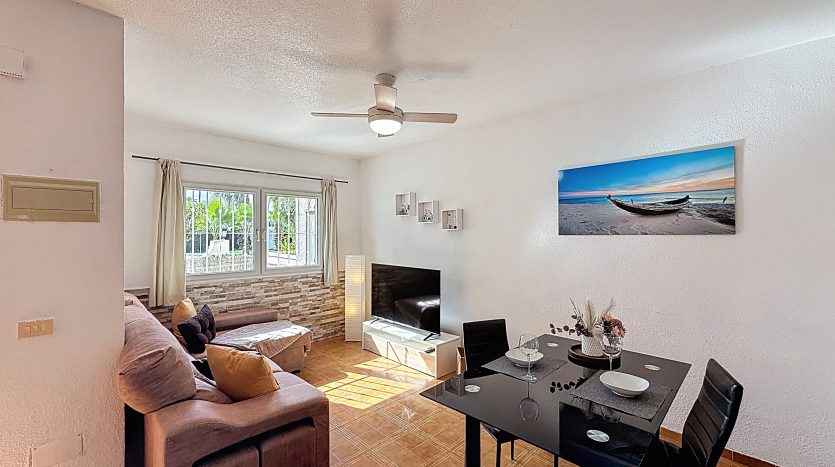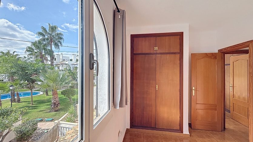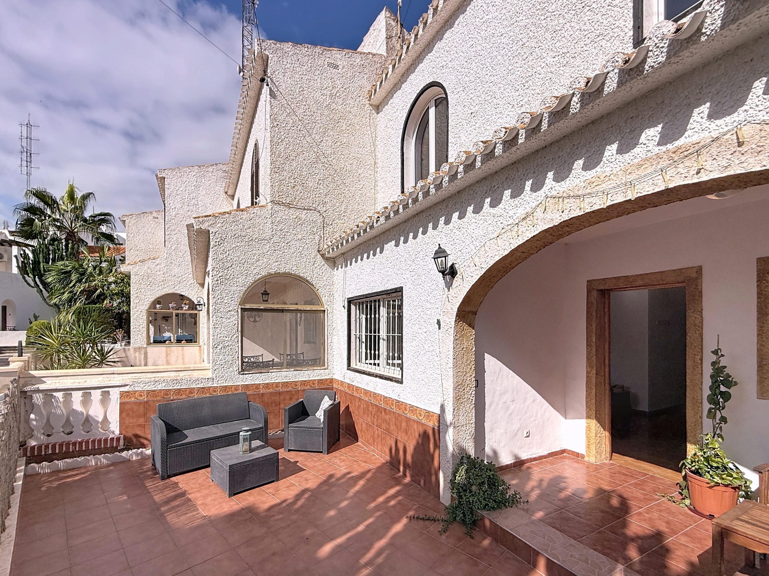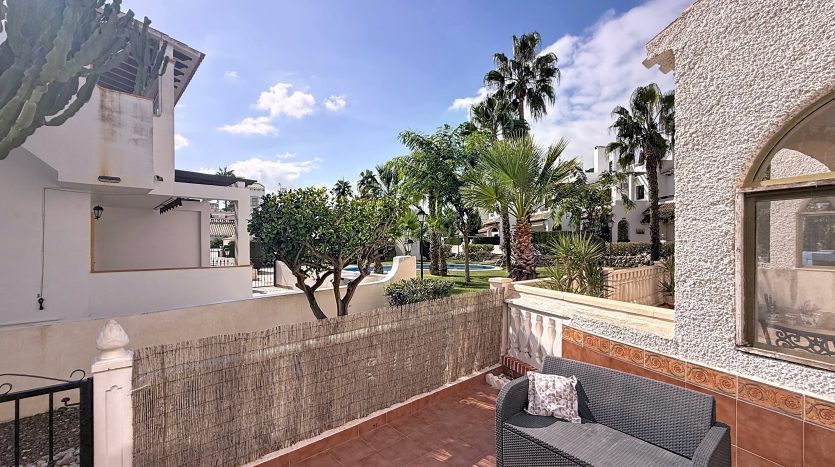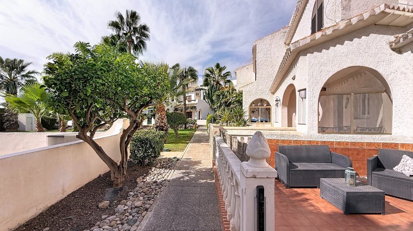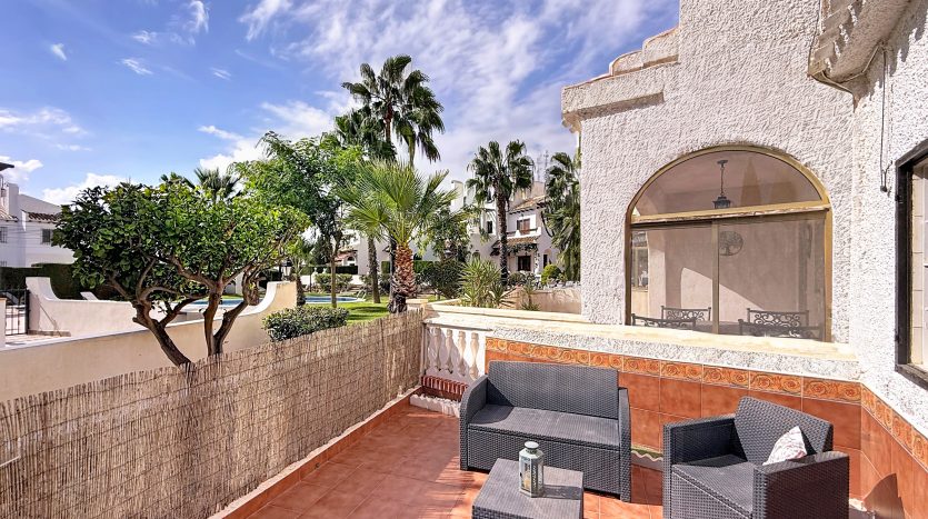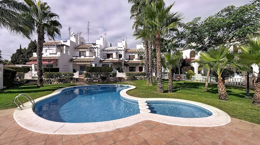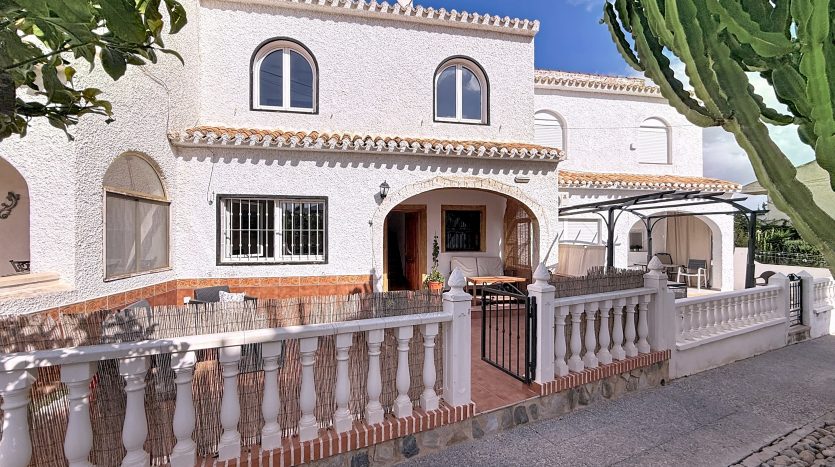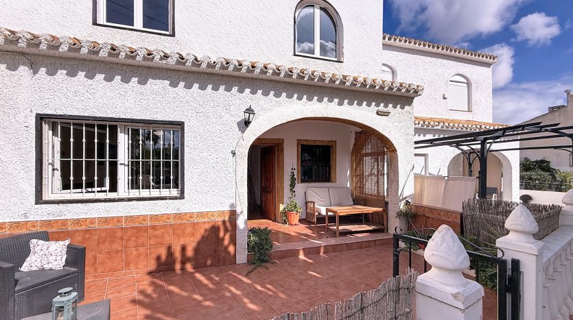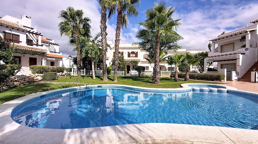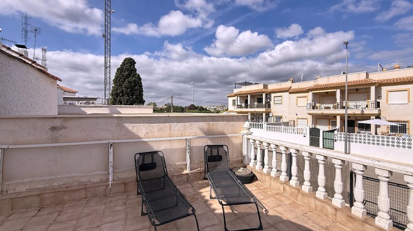 Superbe maison mitoyenne située dans une résidence fermée avec piscine communautaire sur Villamartin à seulement 5 km des plus belles plage de la région , à seulement 300 mètres du centre commrcial de la Fuente offrant une multitude de commodités ,tels que des bars , restaurants ainsi que deux supermarchés
