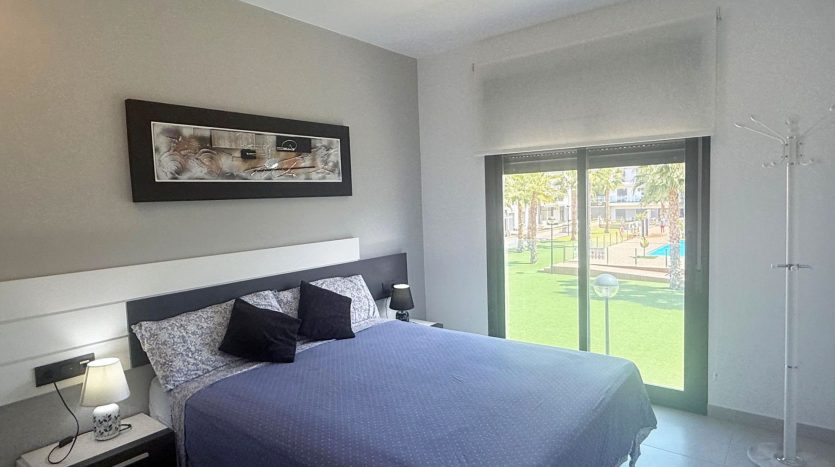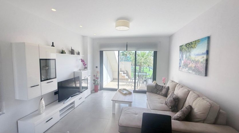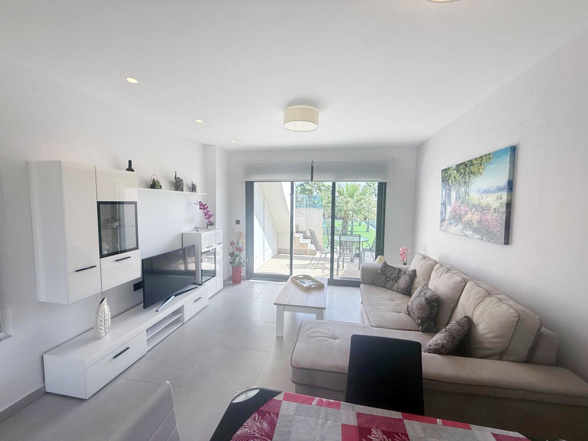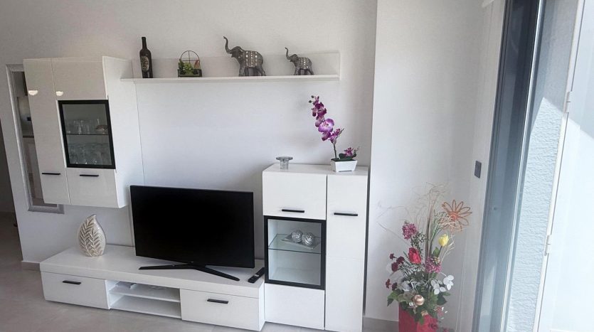 Appartement contemporain situé dans une résidence fermée sur El Raso à proximité de la station balnéaire de Guardamar, dans une zone résidentielle en bordure d’un très beau parc naturel.