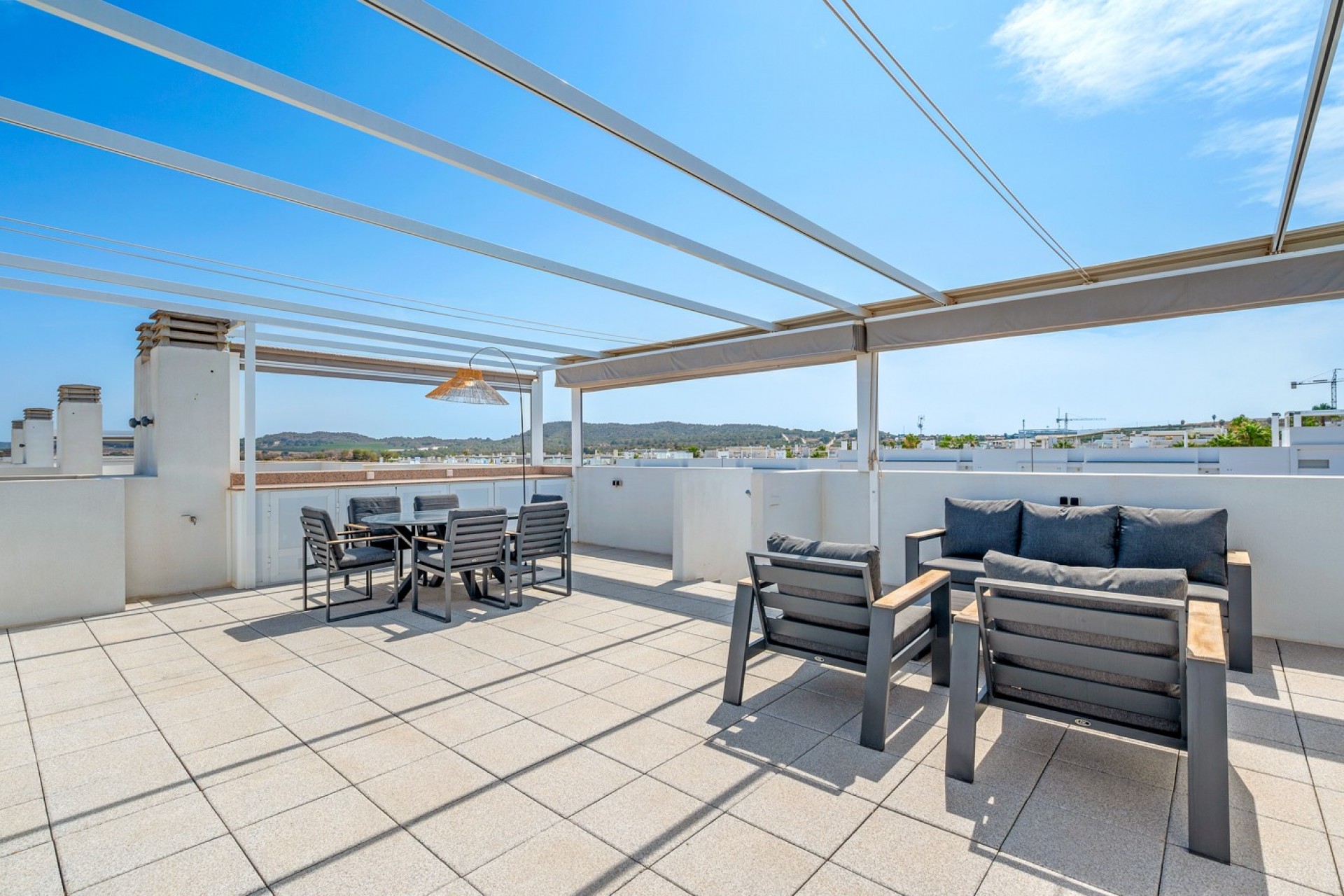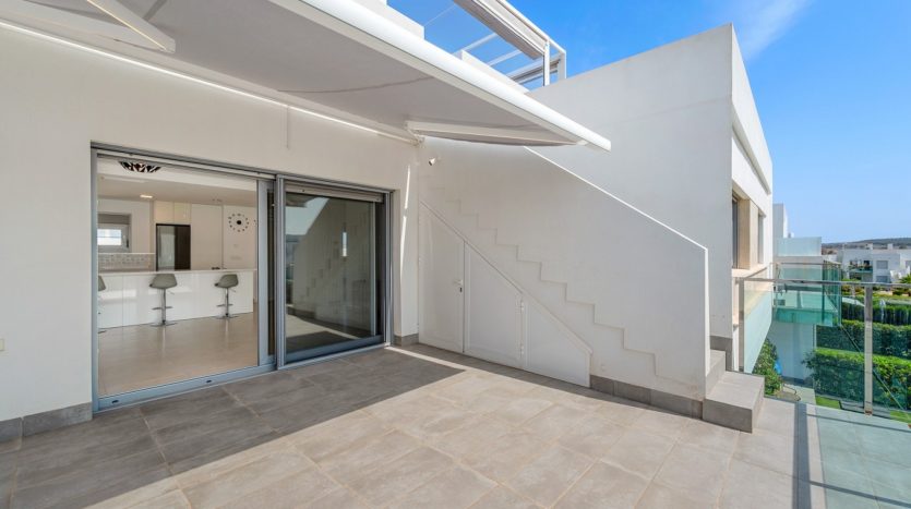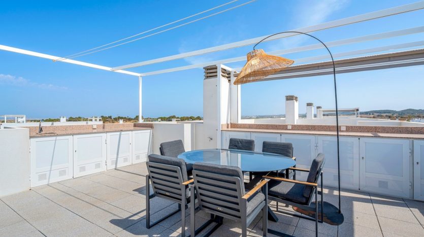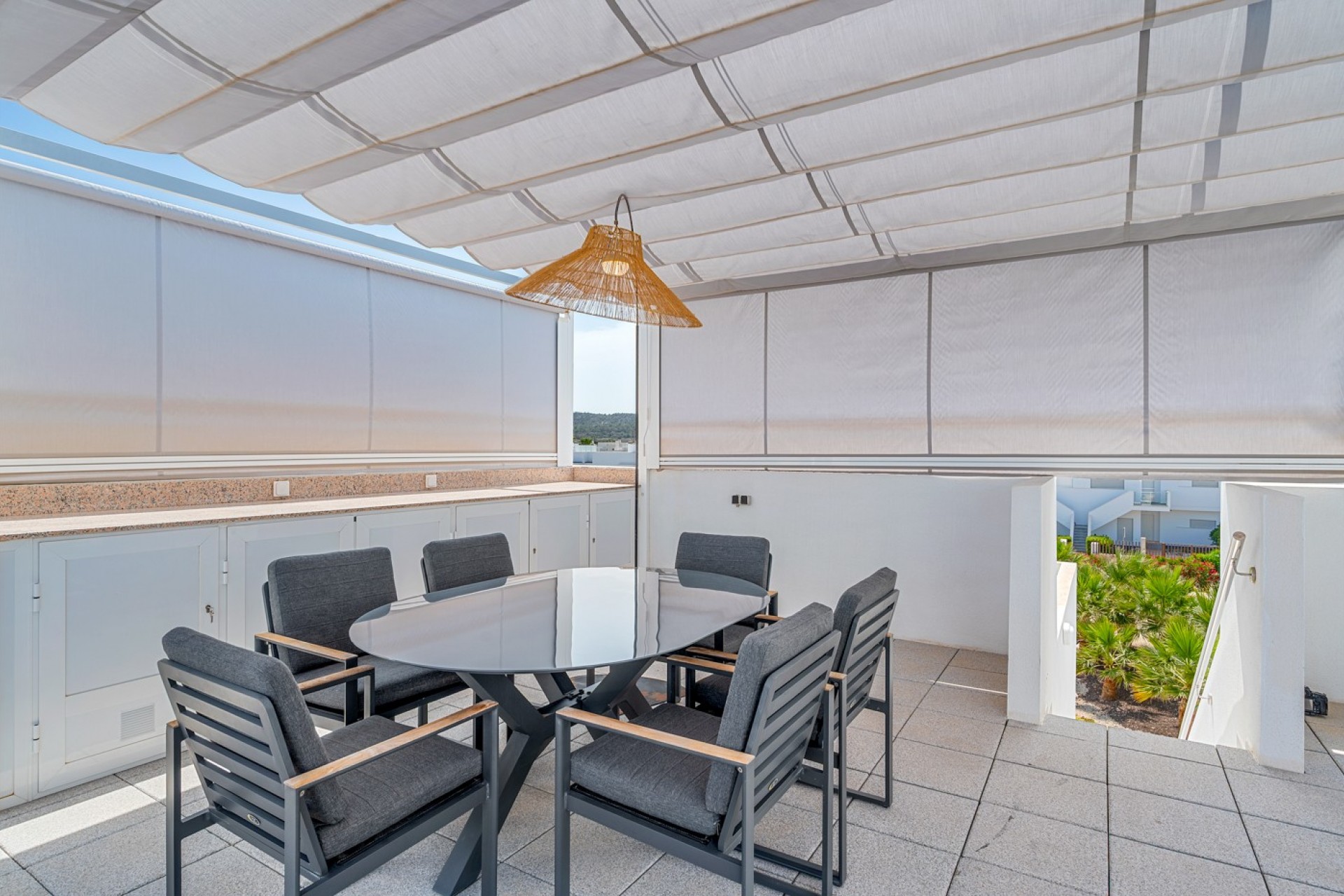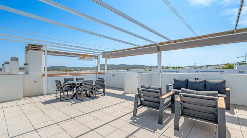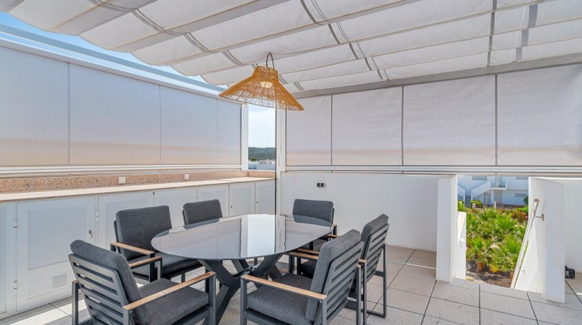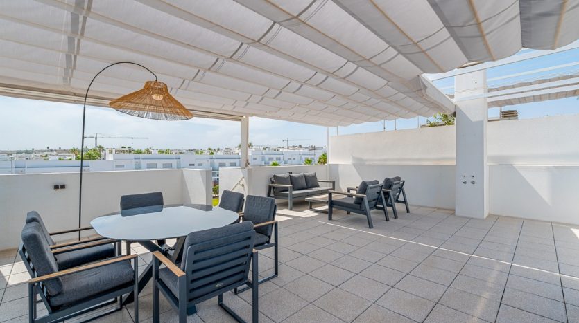 L’appartement dispose d’un superbe solarium privé d’une surface de 50 m2 ainsi qu’une terrasse avant orientée SUD offrant une vue sur les jardins et les espaces communautaires ainsi que sa piscine entourée de gazon naturel.