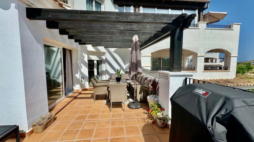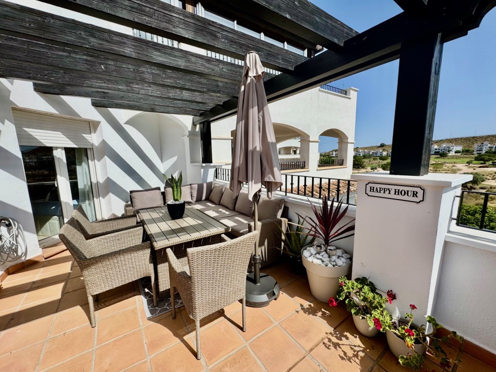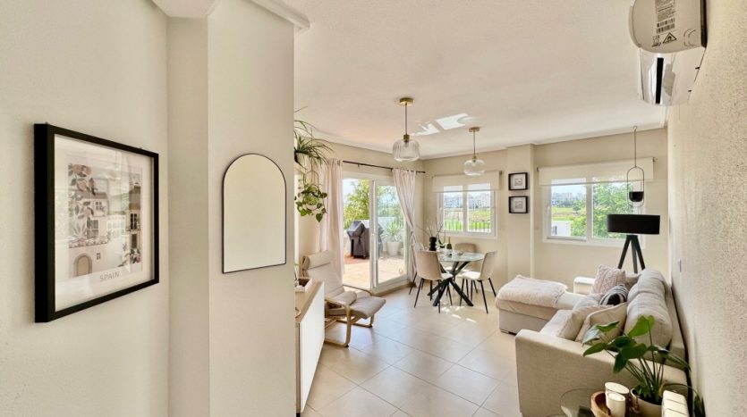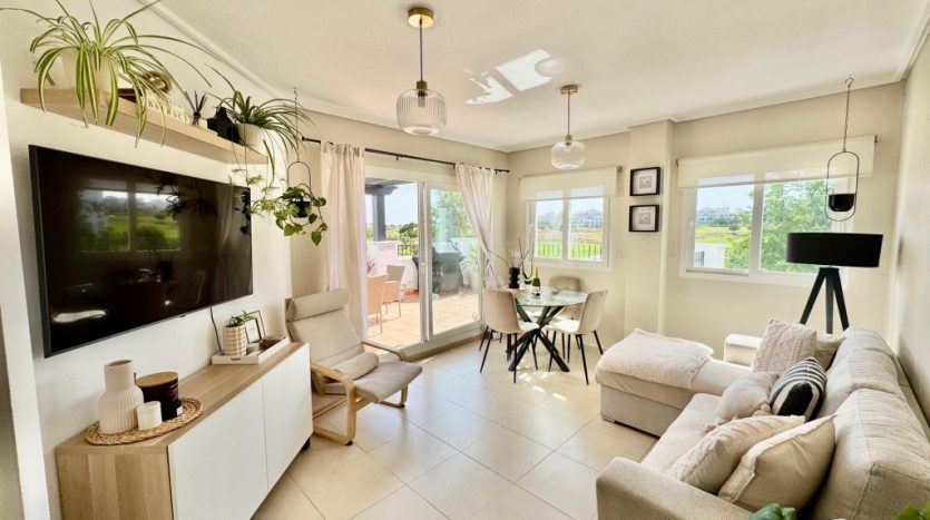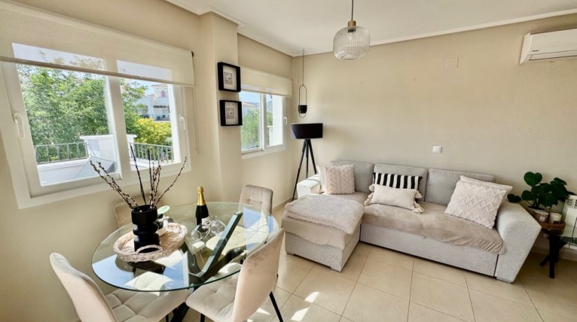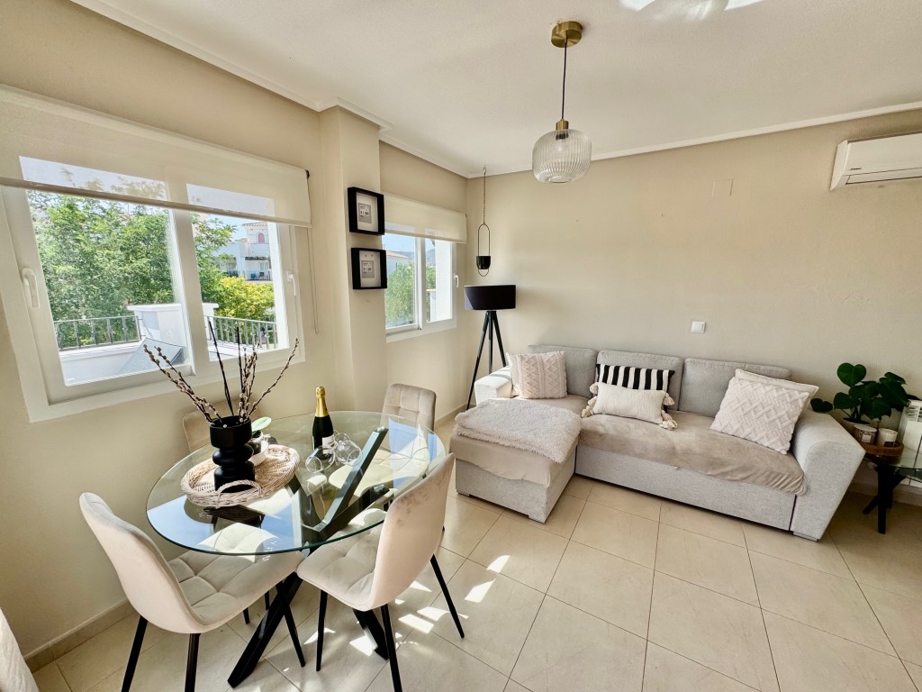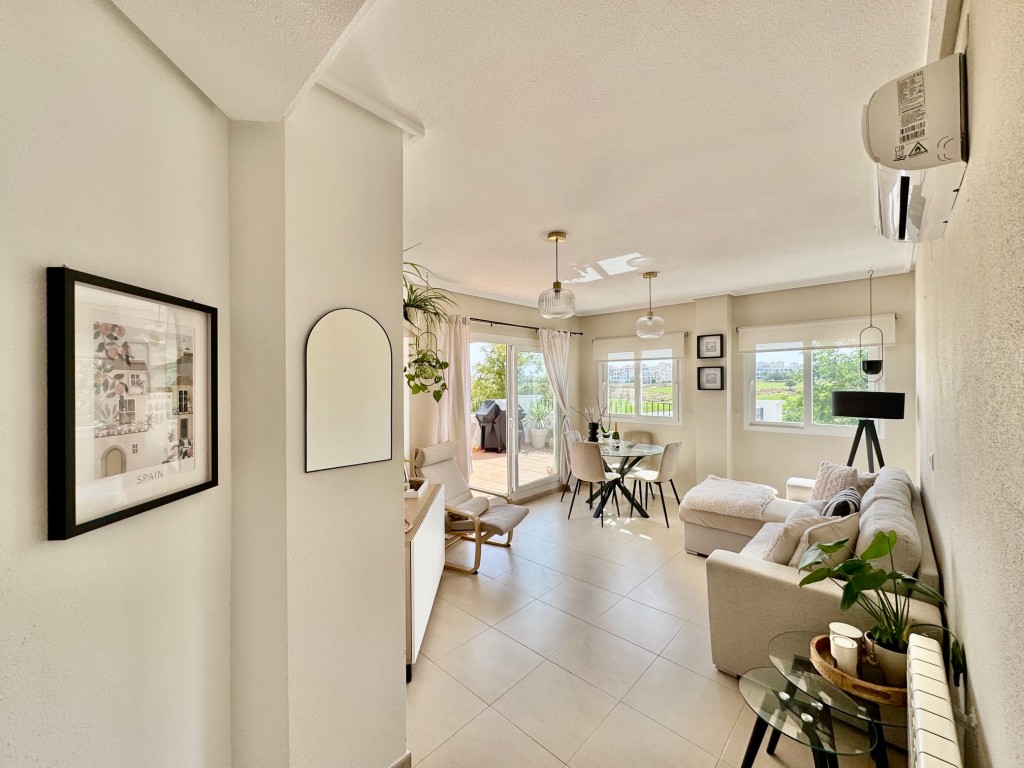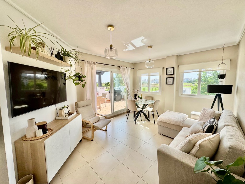 Appartement deux chambres situé en plein coeur d’un resort de golf entourée d’espaces verts avec piscine communautaire sur Sucina à seulement 20 minutes des plus belles plages de la région et à seulement 25 km de la Zenia.
