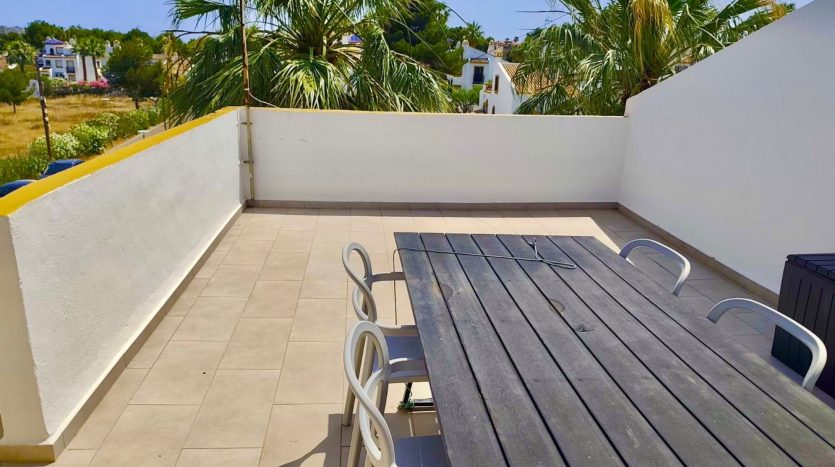 La propriété dispose d’une terrasse avant avec vue sur la piscine mais également d’un très beau solarium privé.