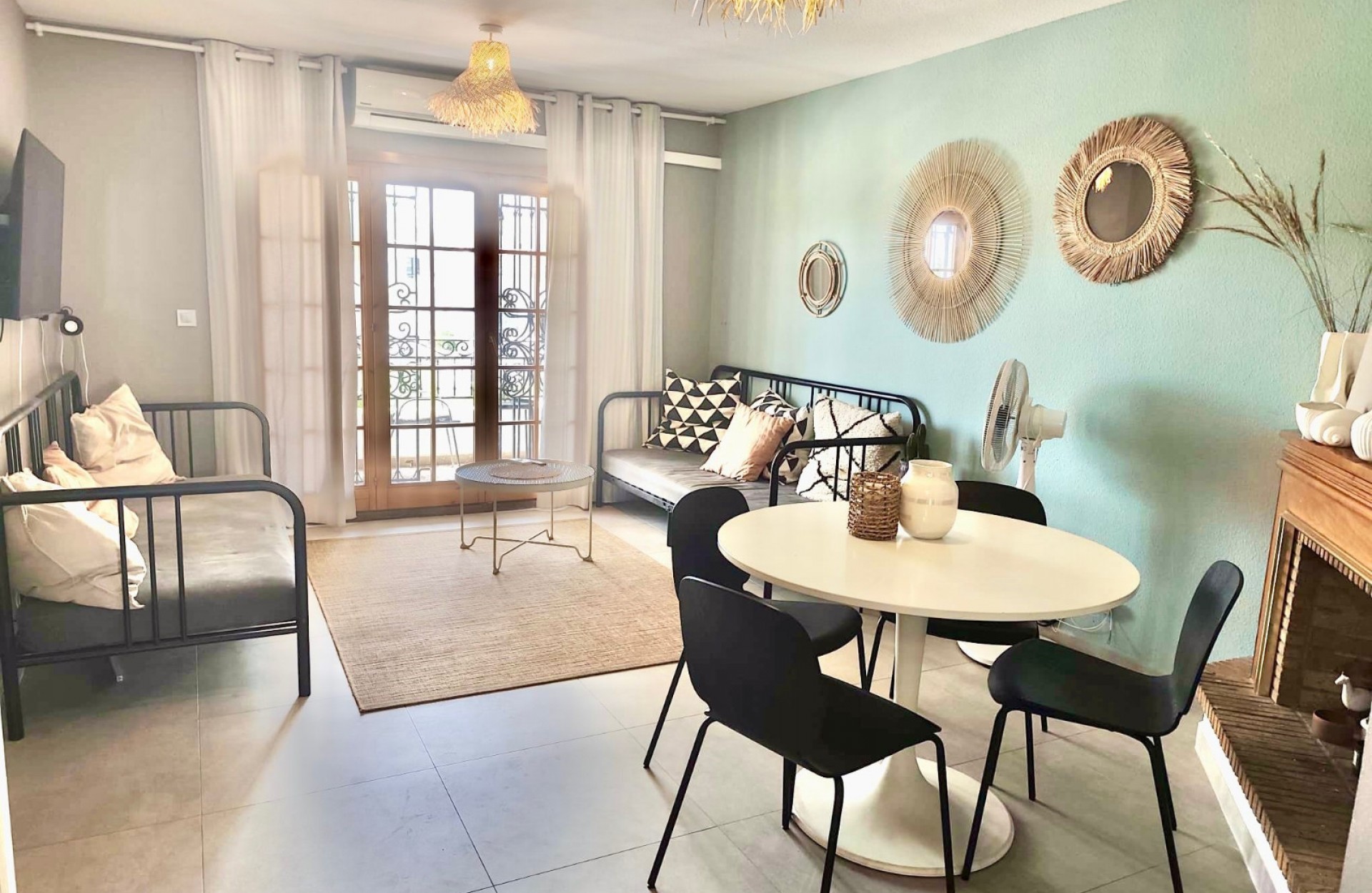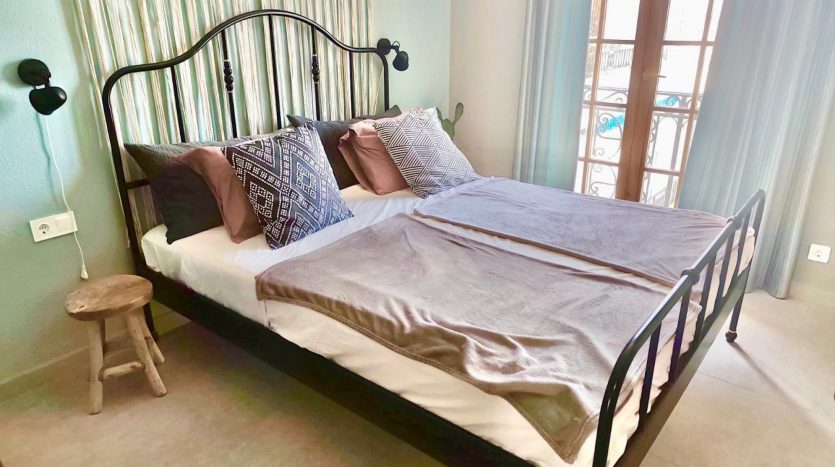 L’appartement situé au premier étage, propose, un salon & salle à manger avec feu ouvert , une cuisine entièrement équipée ouverte sur le salon, deux chambres ainsi qu’une salle de bains rénovée