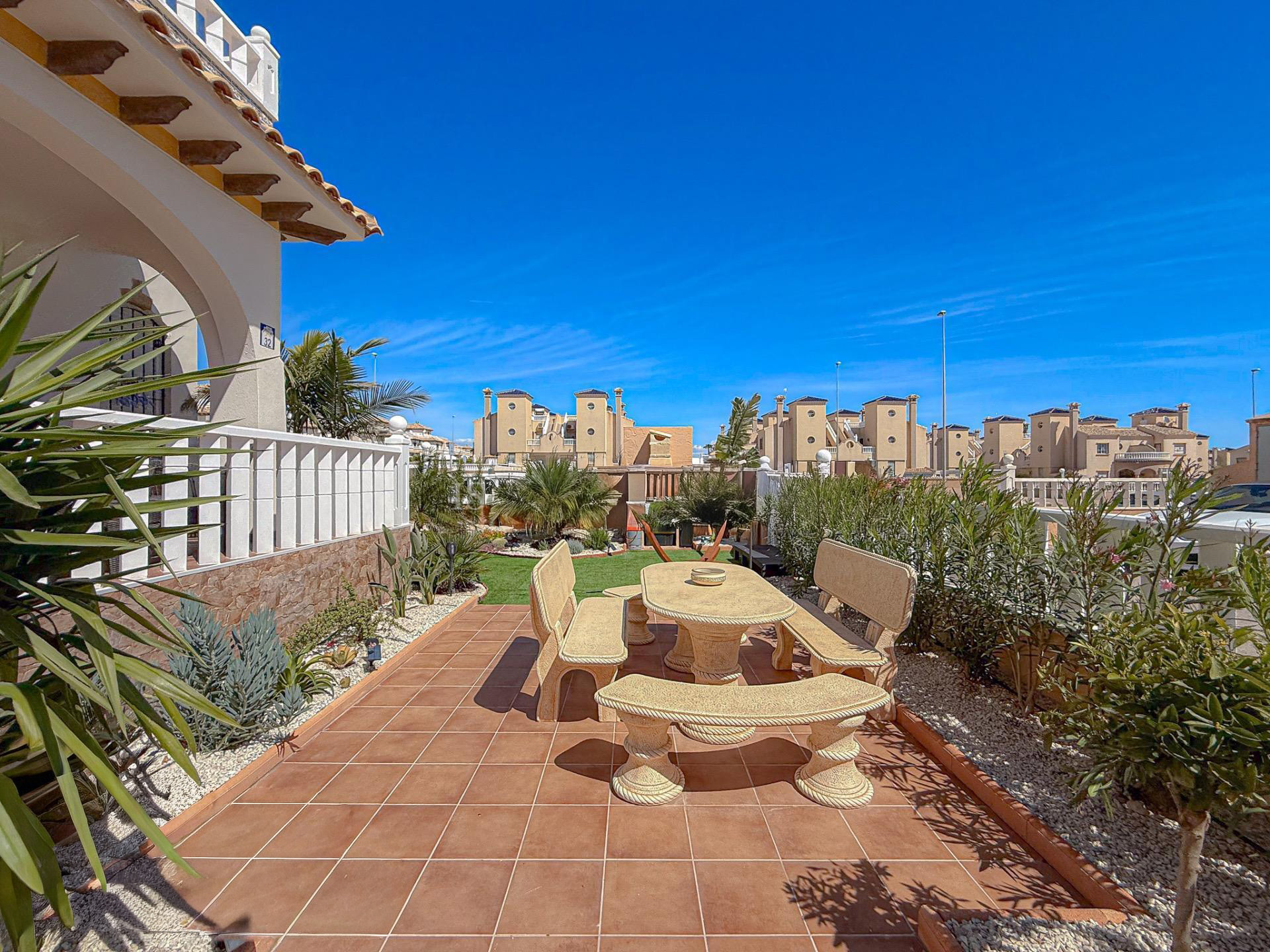 Superbe villa située dans la célèbre urbanisation de Lomas de Cabo Roig à seulement 3 km de la plage et proche des bars et restaurants.